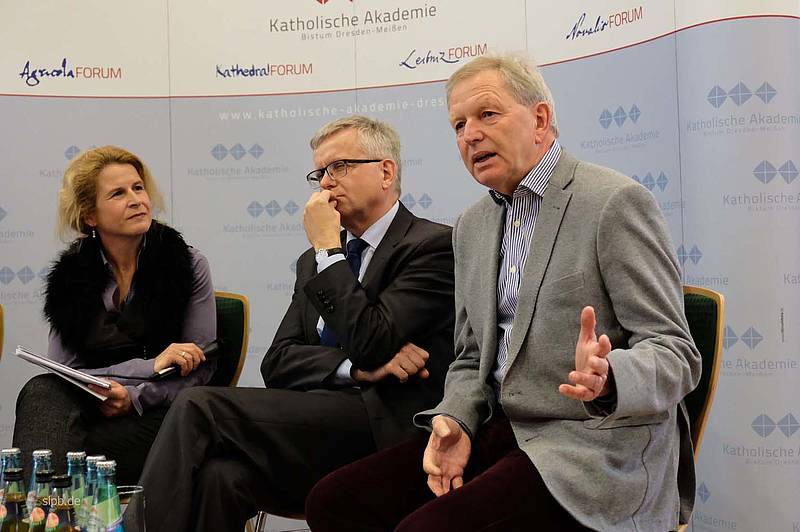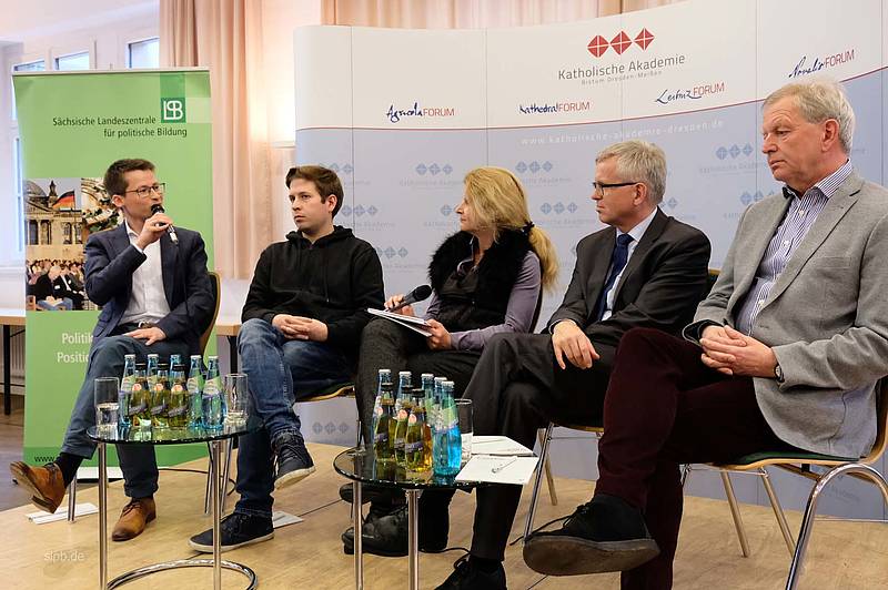 „Alt gegen Jung? Auf der Suche nach einem neuen Generationenvertrag“ – so lautete das Thema einer Diskussion am 16. Mai, zu der die Sächsische Landeszentrale für politische Bildung und die Katholische Akademie des Bistums Dresden-Meißen eingeladen hatten. Es diskutierten Juso-Chef Kevin Kühnert, Wirtschaftswissenschaftler Felix Rösner, Caritas-Direktor Matthias Mitzscherlich und der evangelische Altbischof Jochen Bohl. Moderiert wurde der Abend von MDR-Journalistin Ine Dippmann.