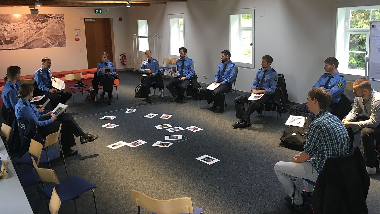 Auf diesen, emotional nicht einfachen, Weg der Vergangenheitsbearbeitung begeben sich erstmalig 19 Studierende der Hochschule der Sächsischen Polizei (FH). In Kooperation mit der Sächsischen Landeszentrale für politische Bildung (SLpB) und der KZ-Gedenkstätte Mittelbau-Dora fand dort am 3. und 4. September 2020 ein Seminar statt, in dem sich die angehenden Kommissarinnen und Kommissare intensiv mit der Geschichte des Konzentrations- und Arbeitslagers, speziell mit Blick auf die Rolle der Polizei im Machtgefüge des Nationalsozialismus beschäftigten. Inhaltlich begleitet wurde der Besuch von den Mitarbeitern der Gedenkstätte – einer von ihnen ist Felix Roth, der sowohl Jugendliche als auch bereits Thüringer Polizistinnen und Polizisten durch das Seminar führte. Zum Einstieg fragte er, welche Gründe die Anwesenden zur Teilnahme bewegt hatten. Neben allgemeinem Interesse an Gedenkkultur und Geschichte war besonders die Rolle der Polizei im Nationalsozialismus und die kritische Reflexion ihrer Tätigkeit ein Thema, das die Studierenden bewegte. Eine der ersten Gruppenarbeiten befasste sich mit fotografischen Dokumentationen polizeilicher Arbeit von 1933 bis 1945. Es irritierten vor allem die Fotos von Deportationen und Exekutionen durch die Polizei – insbesondere da jeder der Anwesenden die heutige Polizeiarbeit mit vollkommen gegensätzlichen Zielen verbindet: Grundrechte gewährleisten, Sicherheit vermitteln, jedes Leben schützen.