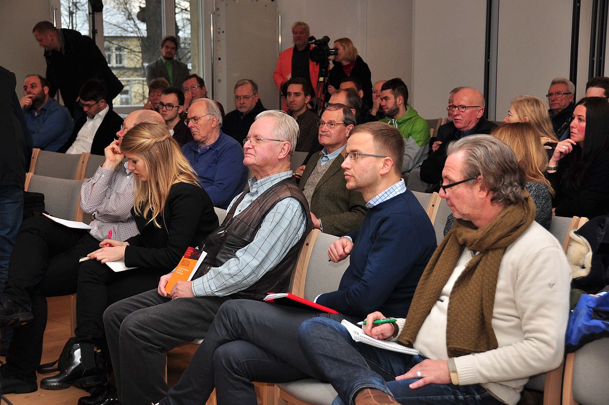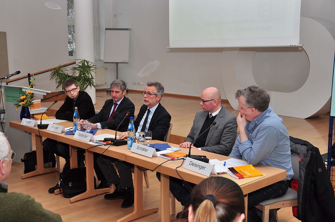 Es ist Mittwochvormittag, kurz vor elf. Durch die Fester des großen Vortagssaales im Schützenhof fällt die milde Wintersonne, die Stuhlreihen füllen sich langsam mit interessierten Gästen und zahlreiche Journalisten werben um die Aufmerksamkeit des Forscherteams um Prof. Dr. Hans Vorländer. Weniger angenehm als diese Eingangsszene ist der eigentliche Anlass der Veranstaltung: fast genau ein Jahr nachdem die Landeszentrale mit der Bereitstellung ihrer Räume für eine Pegida-Pressekonferenz für nationales und internationales Aufsehen gesorgt hat, sind an diesem Tag Prof. Dr. Hans Vorländer, Maik Herold und Dr. Steven Schäller geladen, um mit ihrem neuen Buch "PEGIDA - Entwicklung, Zusammensetzung und Deutung einer Empörungsbewegung" die Ergebnisse der ersten systematisch-wissenschaftlichen Analyse des Phänomens Pegida zu präsentieren.
