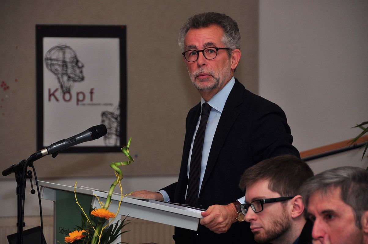 Nach weiteren Worten des Dankes und der Vorstellung tritt Frank Richter vom Rednerpult zurück und Prof. Vorländer übernimmt das Wort.