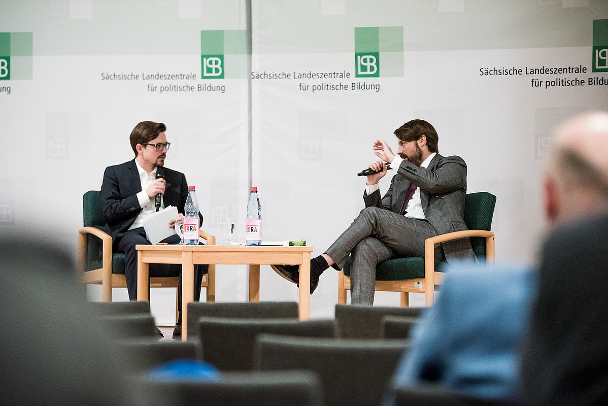 Bastian Brandau, der die Interviewrolle kurzfristig für den erkrankten Deutschlandfunk-Kollegen Korbinian Frenzel übernahm, meisterte die Gesprächssituation routiniert. Im Verlaufe der Diskussion wurde es sogar ein bisschen emotional. Aber der Reihe nach: