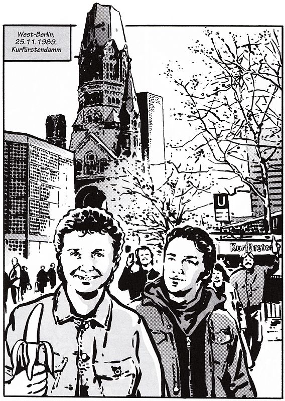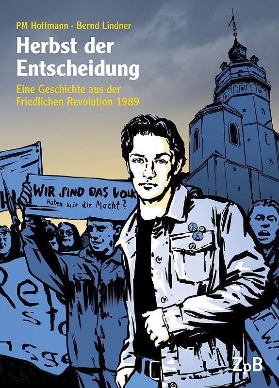 Die Anregung der Landeszentrale nahm der Berliner Christoph Links Verlag dankbar auf und schon kurze Zeit später schrieb der Sozialwissenschaftler Bernd Lindner seinen ersten Prosa-Text. Das Thema ist ihm nicht nur aus wissenschaftlicher Perspektive vertraut, er war im Herbst ’89 in Leipzig dabei. Auch Zeichner Peter M. Hoffmann kennt die Zeit und die Ereignisse aus eigenem Erleben. Und so entstand eine fiktive Geschichte mit konkreten Bezügen zur Realität.
