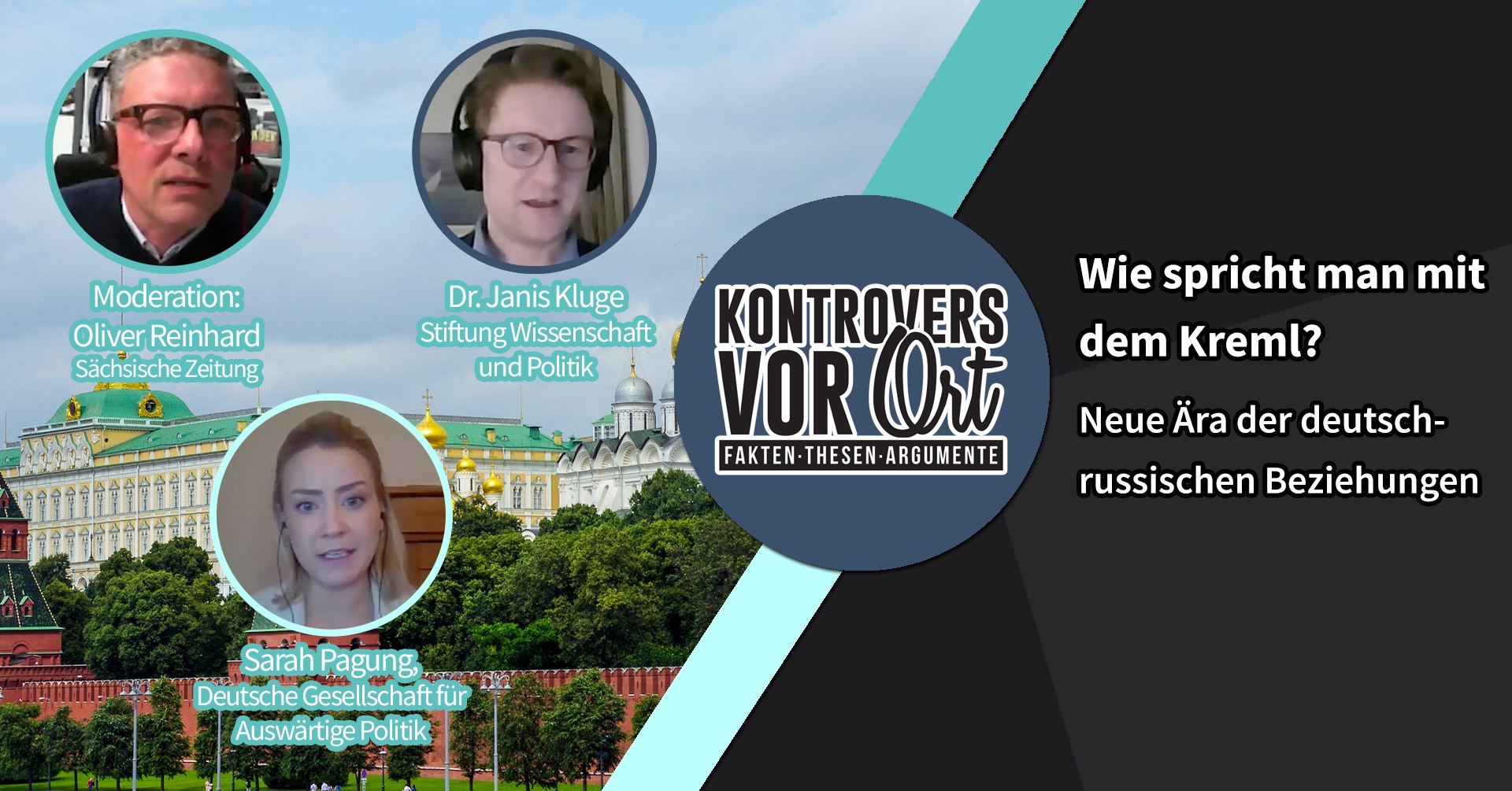 „Russland ist grundlegend mit dem Status Quo in Europa unzufrieden“, stellt auch Janis Kluge fest. Seine Änderungsbemühungen, auch das Unverständnis Russlands gegenüber ukrainischen Souveränitätsbemühungen, habe der Westen zu lange nicht ernst genommen. Jetzt werde er dazu gezwungen. Kluge sprach von einer „bewussten Drohkulisse“ Russlands. Im Dreieck der Weltmächte verliere aber Europa und insbesondere Deutschland immer mehr an Gewicht in der Auseinandersetzung. „Russland will mit den USA reden, sonst mit niemandem!“