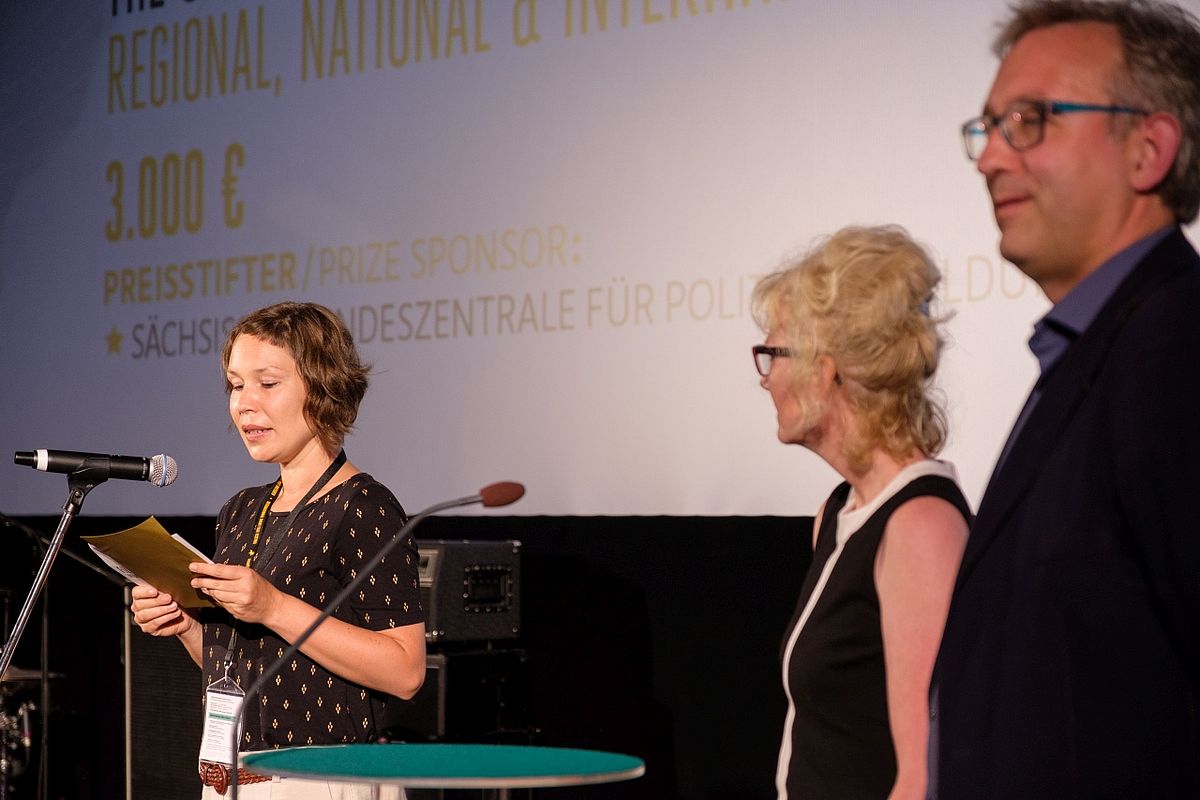 Zur Preisverleihung am Sonnabend, dem 17. Juli, konnte die Filmemacherin selbst nicht anwesend sein. Stattdessen sendet die junge Frau eine kurze Videobotschaft. Sie bedankt sich und entschuldigt sich für das körnige Bild der Aufnahme. Das Geld, sagt sie, helfe ihr, ähnliche Projekte weiterzuführen.