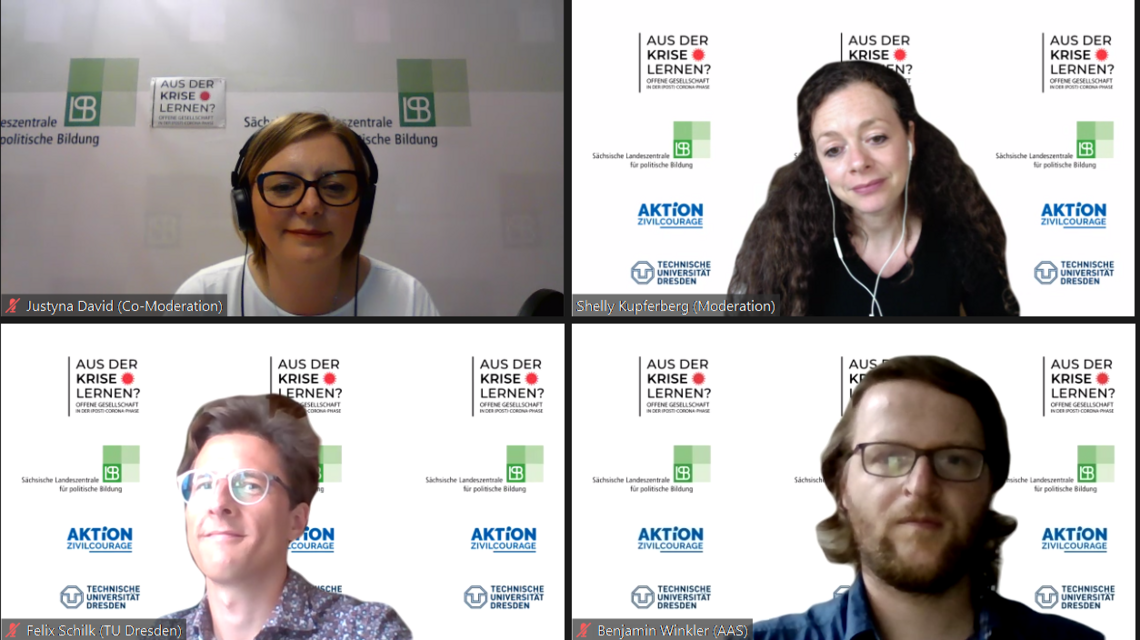 Ein anderes Phänomen, das den gesellschaftlichen Zusammenhalt gefährden kann, sind Verschwörungsmythen. Sie haben eine lange Tradition, es gibt viele Beispiele in der Geschichte, manche sind eher harmlose Narrative. Doch in Krisen, auch jetzt während der Pandemie, zeigt sich, dass der Glaube an derartige Erzählungen Konjunktur hat. Außerdem werden die gefährlichen Aspekte deutlicher. Darüber diskutierten bei einem Webinar am 18. Juni Felix Schilk und Benjamin Winkler, die sich schon lange mit diesem Thema beschäftigen. Was ist eigentlich der richtige Begriff dafür? Zwar sei das Wort „Verschwörungstheorie“ am geläufigsten, sagt Benjamin Winkler von der Amadeu Antonio Stiftung. Bei Theorien habe man jedoch Beweise, lege seine Quellen offen, setzte sich einem kritischen Diskurs aus. „Viele, die Derartiges verbreiten, bleiben das allerdings schuldig.“