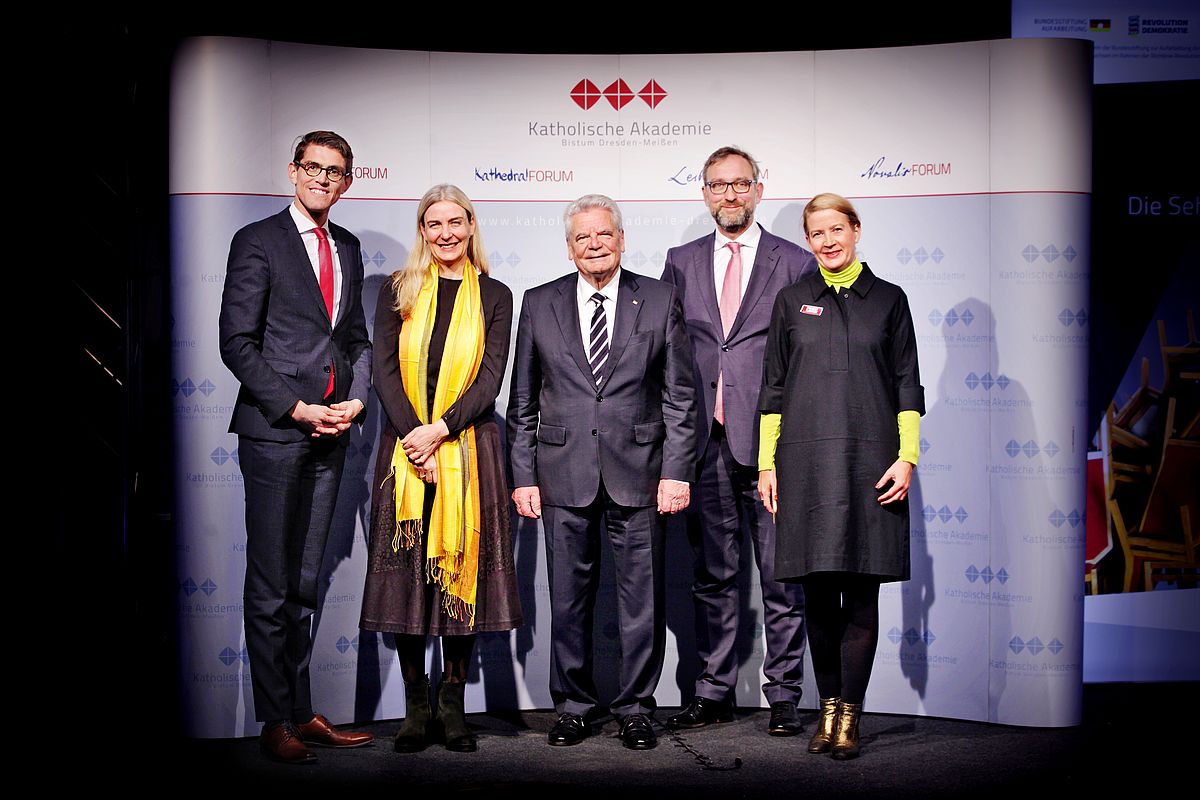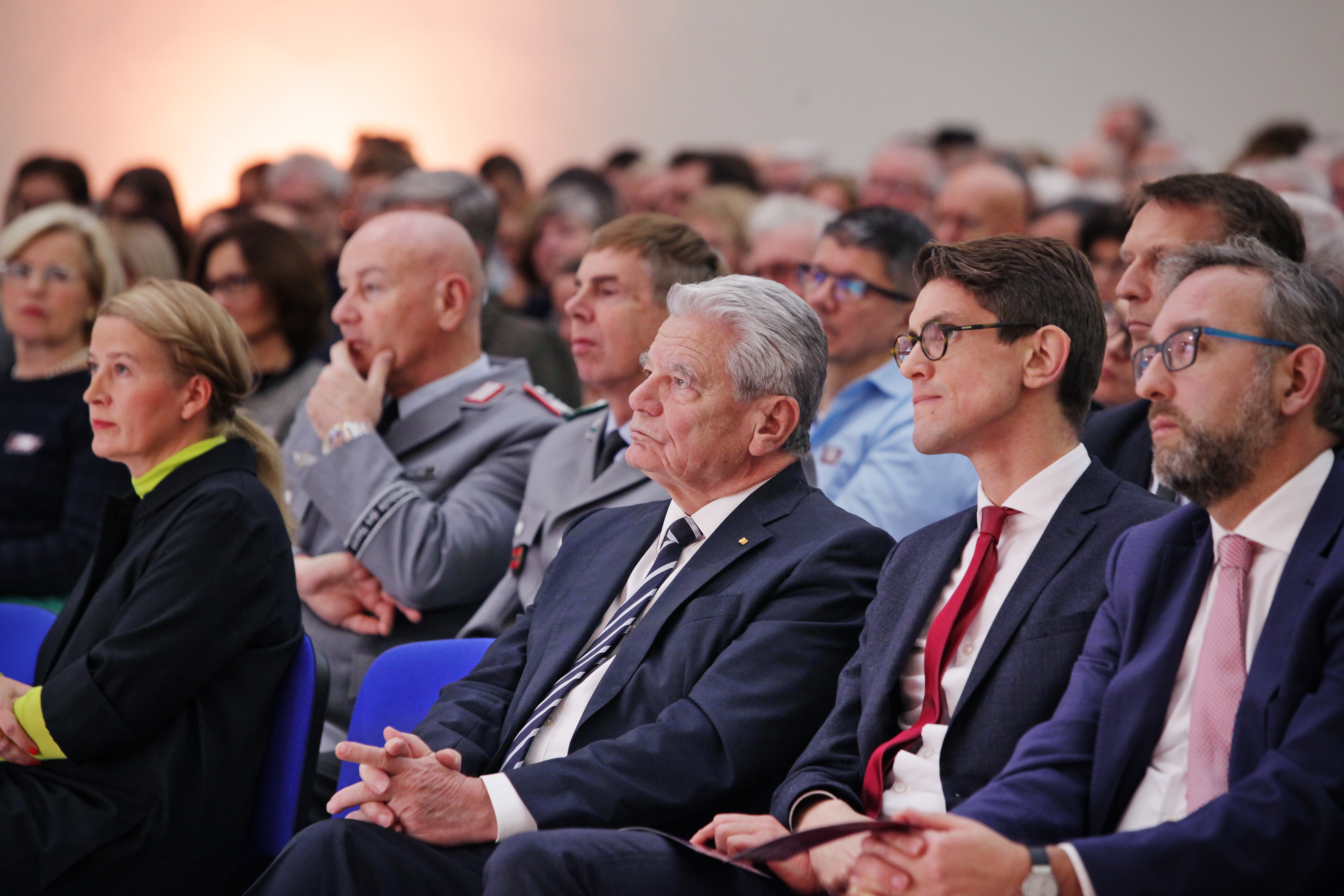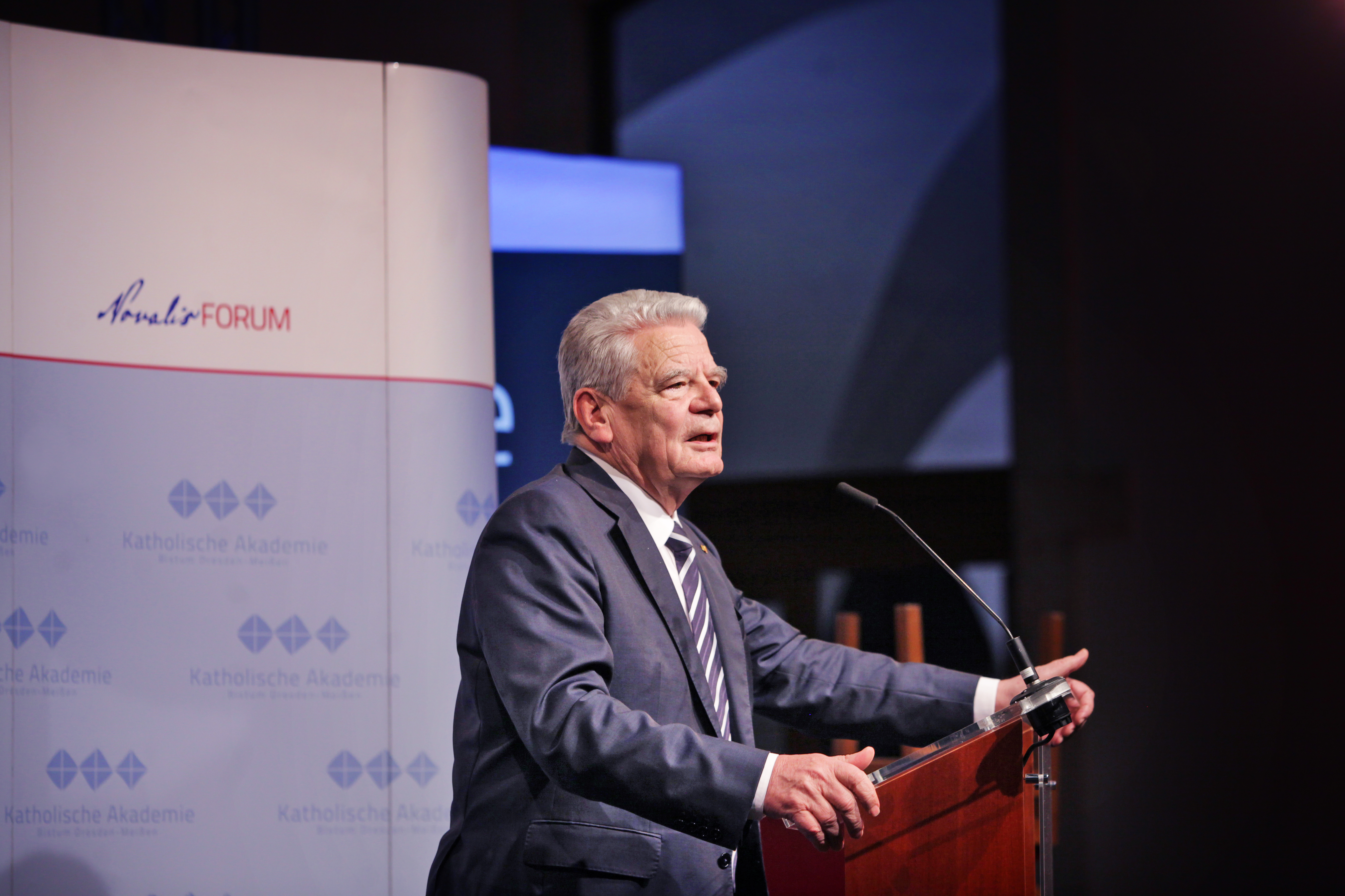 Nach den Erklärungsversuchen für den nicht zu übersehenden Frust gegenüber der Demokratie und dem „System“ – wie schon vor 1933 – zeigte Gauck aber wenig Verständnis für die so empfindenden Menschen. Seine Ermunterung für das Auditorium bestand vielmehr darin, in den Skeptikern, gar Feinden einer offenen Gesellschaft eine Minderheit zu sehen. „Eine Mehrheit würde entscheiden, dass wir sie nicht brauchen und dass sie überflüssig sind“, gab er speziell den Pegida-geplagten Dresdnern mit.