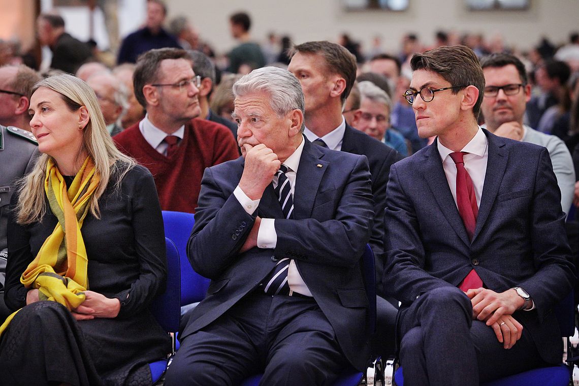 Diesem Wunsch kam Joachim Gauck mit einer schwungvollen, durchaus volkstümlichen und unwiderstehlich optimistischen Rede entgegen. So fröhlich, dass man an der eigenen Wahrnehmung einer überwiegend pessimistischen, ja apokalyptischen Stimmung zumindest im Ostteil Deutschlands zweifeln musste. Damit die realen Errungenschaften nach 1989 gebührend zur Geltung kommen, erinnerte der Redner noch einmal an die politische Gleichschaltung und die wirtschaftlichen Problem in der DDR. Von Mecklenburger Familiengeschichten, vom Bruder, der wegen seiner Parteiferne nicht wie gewünscht zur See fahren durfte, gelangte Gauck über die Handlungsmuster von Anpassung und Gehorsam zur „Kultur der perpetuierten Ohnmacht“.
