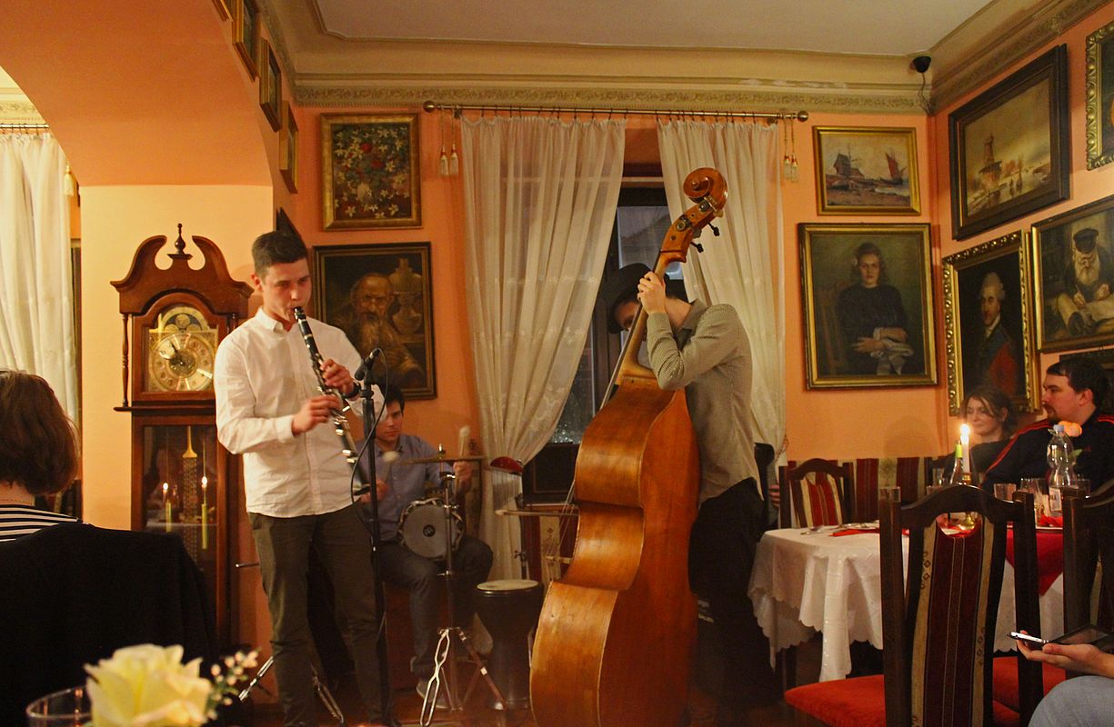 Der Fall es eisernen Vorhangs brachte neue Hoffnung – ab Mitte der 1990er Jahre siedelten sich wieder vermehrt jüdische Künstler an und das jüdische Leben wird durch eine rege Kultur- und Musikszene widerbelebt. Unser Tag in Kazimierz endet im Restaurant Ariel bei traditionellen Speisen und einem Konzert der Klezmerband Legend of Kazimierz „Ich finde es schön, dass wieder junge jüdische Leute hierherkommen“ sagt mir der Oboist der Band bei unserm Gespräch nach dem Konzert „das fühlt sich für mich einfach richtig an“.