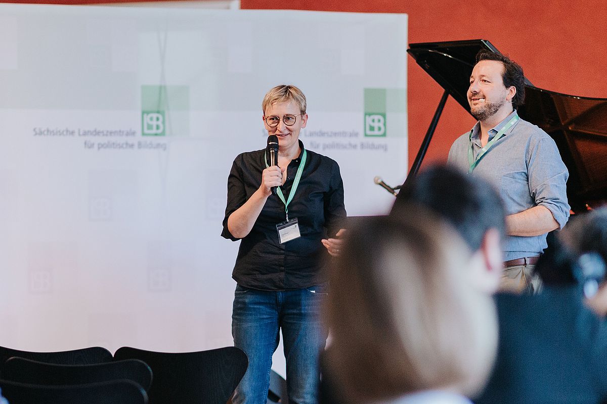 Etwas mehr hatten sich die Organisatoren und zahlreichen Aktiven der Landeszentrale wohl vom Exposé mit den Partnern versprochen. In der Aula des Landesgymnasiums St. Afra sollten sie eingangs in einem Fishbowl selber äußern, was sie gern verhandelt hätten. Die Resonanz blieb unter den Erwartungen.