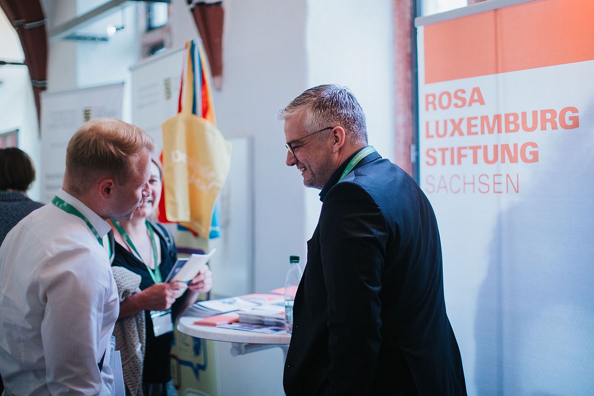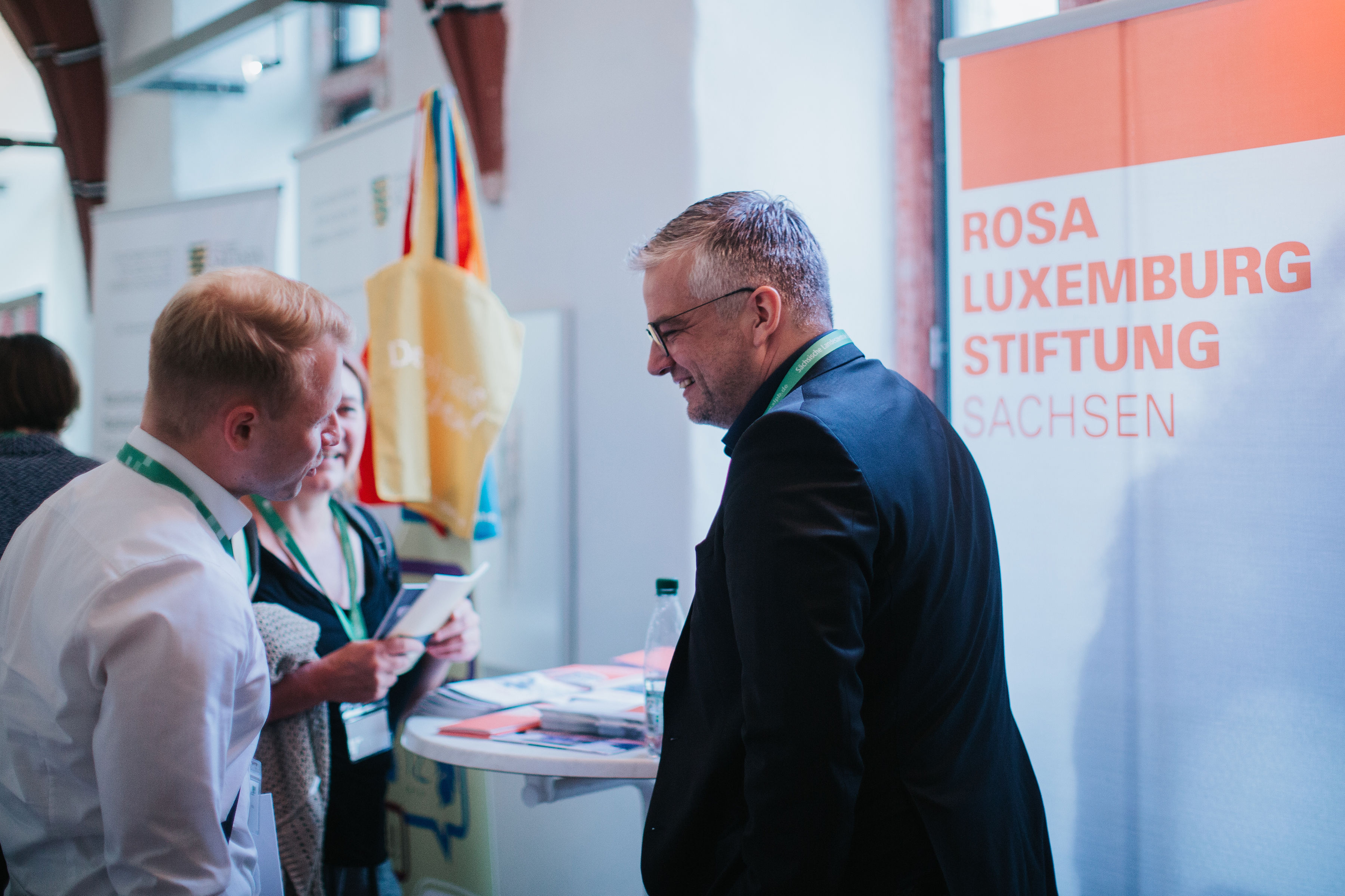 Ein gemischtes, aber ehrliches Bild zeigten die nachmittäglichen Workshops zu verschiedenen Aspekten und Feldern bürgerschaftlicher Mitwirkung. Vorbildliche Beispiele wie der Dresdner Bürgerstiftung standen neben Berichten beispielsweise aus der Flüchtlingsarbeit, dass das Freiwilligenengagement zugunsten der Professionalisierung bei-nahe zusammengebrochen sei. „Viele wissen nicht, wie sie sich engagieren sollen“, hieß es in dem auf die Landesförderung bezogenen Kreis. „Die Fördertöpfe sind da, warum geht es nicht voran?“, fragte Direktor Roland Löffler in die Runde.