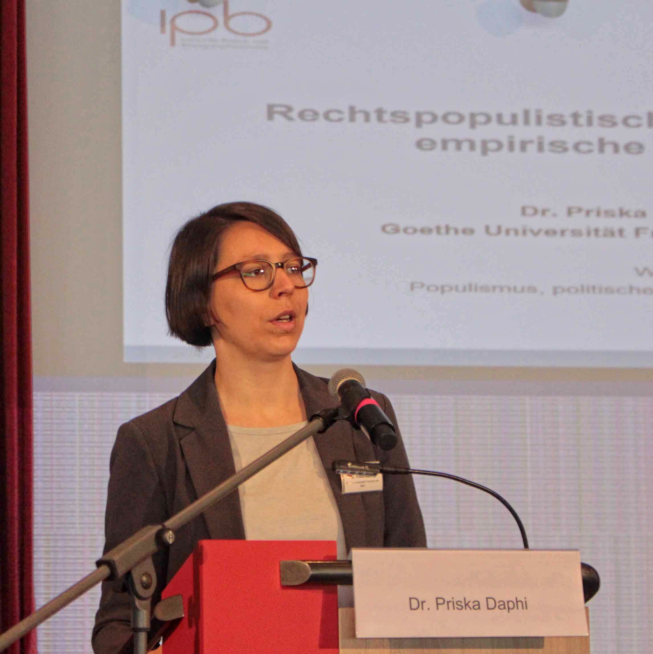 „Was die Pegida-Anhänger eint, ist ihre Abgrenzung zu Fremden und Eliten“, fasst Dr. Priska Daphi ihre Befunde zusammen. „Sie sind im Grundsatz für die Demokratie, aber messen der Meinungspluralität nur wenig Bedeutung bei.“