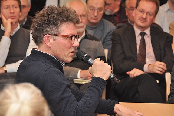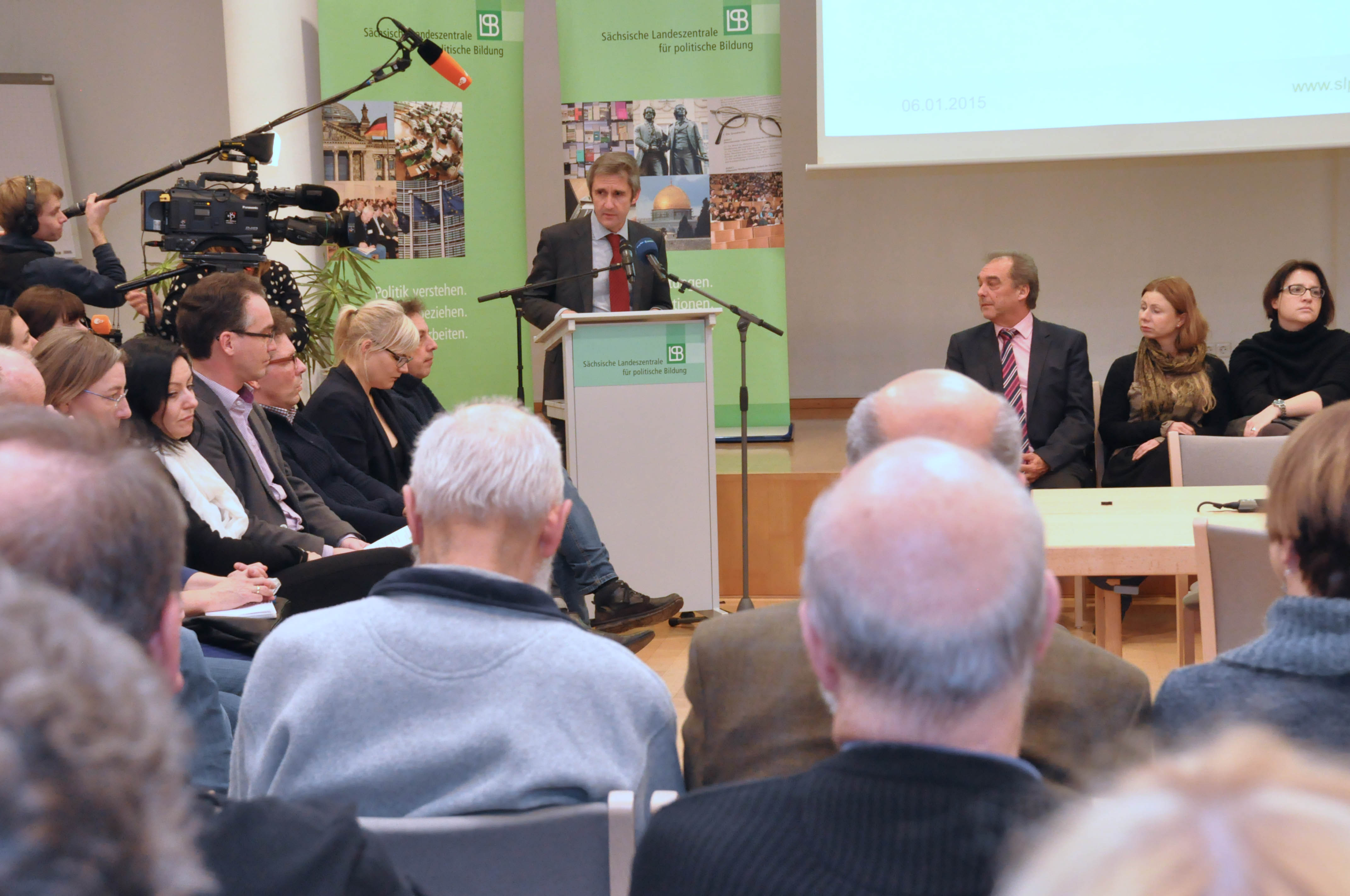 „Es ist der Versuch zu zeigen, dass man öffentlich fair zur Fragestellung diskutieren kann“, umriss Richter in seinem Eröffnungsvortrag das Ziel des Abends. Fast 70 Bürger aus Dresden und der Umgebung hatten sich seinen Auskünften zufolge schriftlich an ihn gewandt, um ihm von ihren Beweggründen wie auch Zweifeln zu berichten, montags den Patriotischen Europäern gegen die Islamisierung des Abendlandes, kurz Pegida, auf die Straße zu folgen. Denen, die sich nicht auf der Veranstaltung äußern wollten, bot der frühere Theologe vor Beginn des Abends ein internes Forum zum Gedankenaustausch.