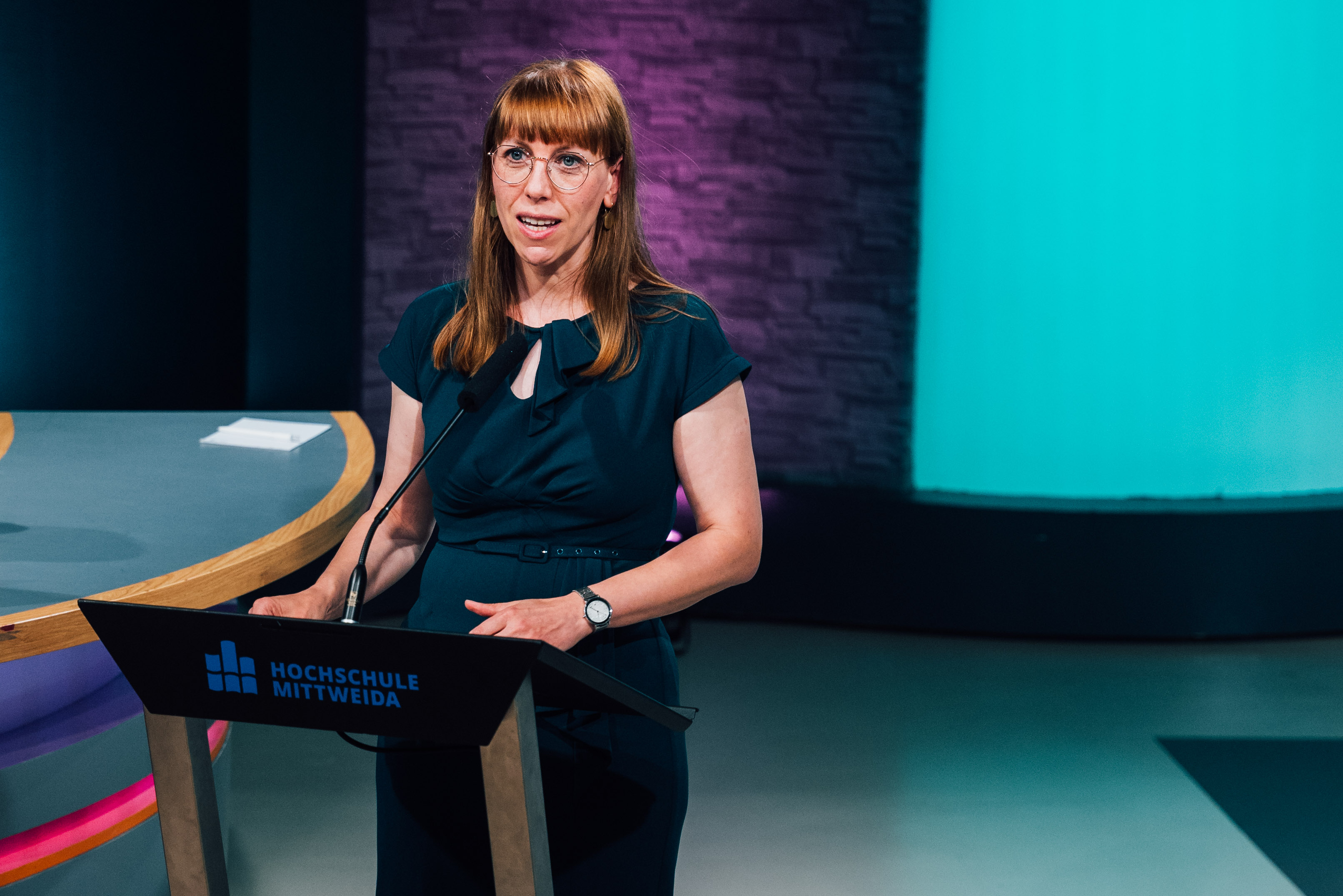 Kurz vor Start herrscht hektische Betriebsamkeit hinter den Kulissen des 30. Geburtstags der SLpB. An diesem ersten Montag im Juli strahlt die Sonne schon vormittags warm über Mittweida, drinnen im futuristischen Hochschulgebäude des Zentrums für Medien und Soziale Arbeit wuseln Organisatorinnen und Podiumsgäste umher. Es werden Ellbogen zur Begrüßung gereicht und frisch desinfizierte Hände gedrückt, alle sind ein bisschen aufgeregt: Nach monatelangem Lockdown ist es für manche hier die erste Veranstaltung, zu der trotz schwerpunktmäßiger Onlineübertragung so viele Leute zusammenkommen. Während auf den Gängen und bei den Häppchen gelacht und gesmalltalked wird, bereiten die Studierenden das hochschuleigene Medienzentrum für die Onlineübertragung vor.