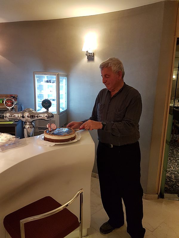 In Israel wartete er auf uns mit einem echten Highlight: Itzik Shani – israelischer Reiseleiter der SlpB-Israelreisen seit über 20 Jahren – feierte am Tag unserer Landung seinen 70. Geburtstag! Sein rundes Jubiläum hielt ihn aber keinesfalls davon ab, uns den phantastischen Ausblick auf Tel Aviv von der alten Hafenstadt Jaffa zu zeigen. Der Anblick der pulsierenden Hauptstadt Israels war für uns ein angenehmer Willkommensgruß nach dem kräftezehrenden Flug. Bei einem guten Glas Wein und leckerem israelischen Gebäck stießen wir auf das Wohl Itziks an.