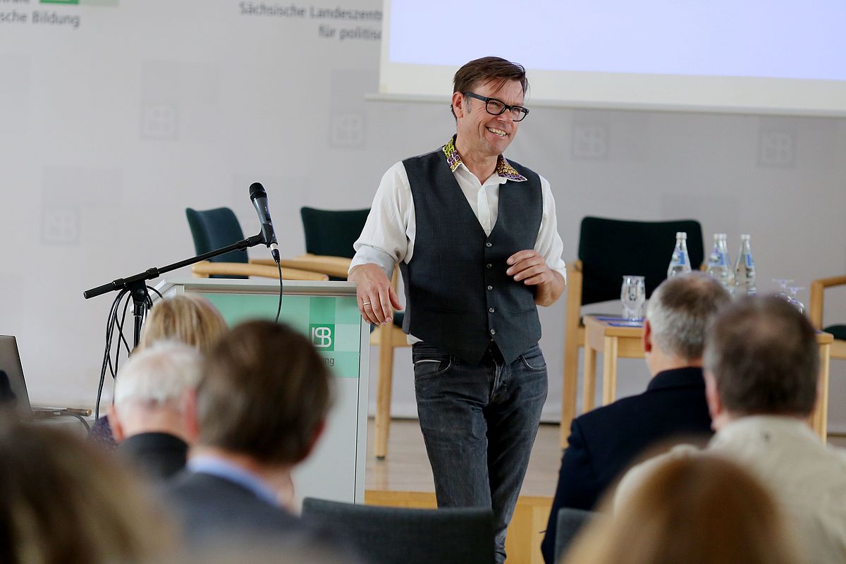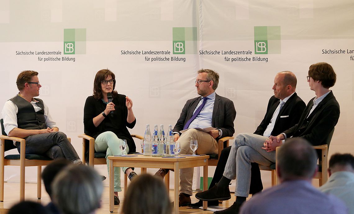 Eingeladen waren dazu der holländische Stadtplaner, Künstler und Autor Prof. Ton Matton, der Bürgermeister der Kleinstadt Meerane, Prof. Dr. Lothar Ungerer, die Journalistin Diana Wetzestein, und der Demografie-Forscher Dr. Johannes Staemmler. Durch den Abend führte der Direktor der Landeszentrale, Dr. Roland Löffler.