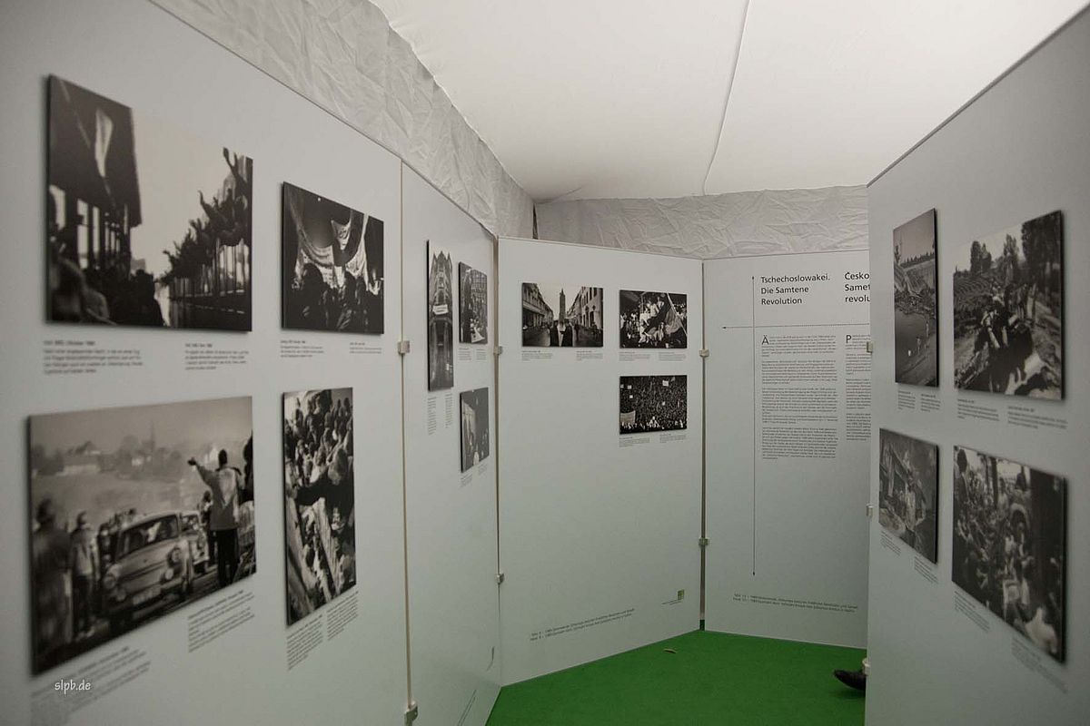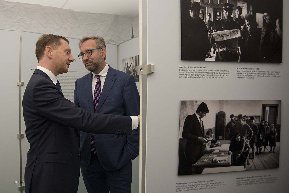 Die Sächsische Landeszentrale für politische Bildung (SLpB) brachte sich passend zum Anlass mit einer eigenen Ausstellung ein: „1989 Zeitenwende: Osteuropa zwischen Friedlicher Revolution und Gewalt“. Das Interesse an der Ausstellung war groß. Sachsens Ministerpräsident Michael Kretschmer besuchte die Schau ebenso Sachsens Wirtschaftsminister Martin Dulig. Zentral präsentierte sich „1989 Zeitenwende …“ im Garten. Wer den historischen Ort betreten wollte, kam kaum umhin, die Prager Ereignisse in diesem größeren Zusammenhang zu betrachten.