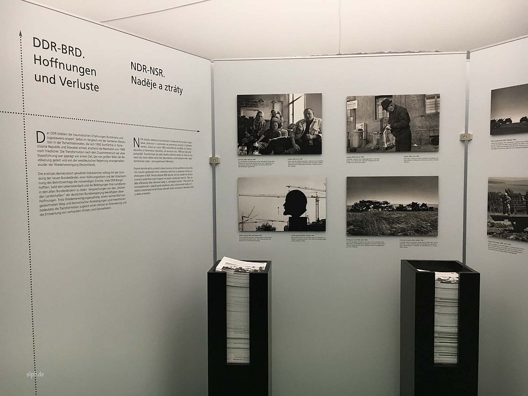 In der in Prag erstmalig vorgestellten Bilderschau geben Texte des Dresdner Historikers Prof. Dr. Tim Buchen den Aufnahmen sowohl in der Ausstellung als auch im dazugehörigen Katalog einen Zusammenhang und einen historischen Hintergrund. Den Bogen in die heutige Zeit schlägt die Journalistin Doreen Reinhard mit einem Artikel über die NSU-Verstrickungen eines abgelichteten Zwickauer Neonazis. Als einziges gestelltes Foto, das drei sehr selbstbewusst in die Kamera blickende Neonazis darstellt, sticht die Aufnahme heraus. Genauso wie Fotografien von gestellten Leichenfunden in Rumänien regt es an zu Diskussionen über das politische Erbe der Wende und Fake-News damals wie heute. Aufnahmen einsamer Menschen vor schmutzigen Fassaden weckten zudem Erinnerungen - nicht nur an die Prager Ereignisse, sondern auch an ein Leben im Ostblock, das vor 30 Jahren sein Ende fand.