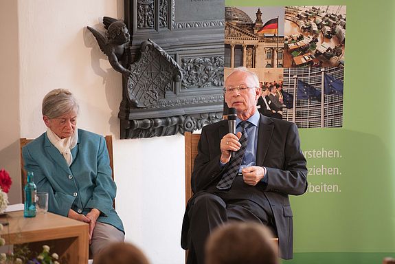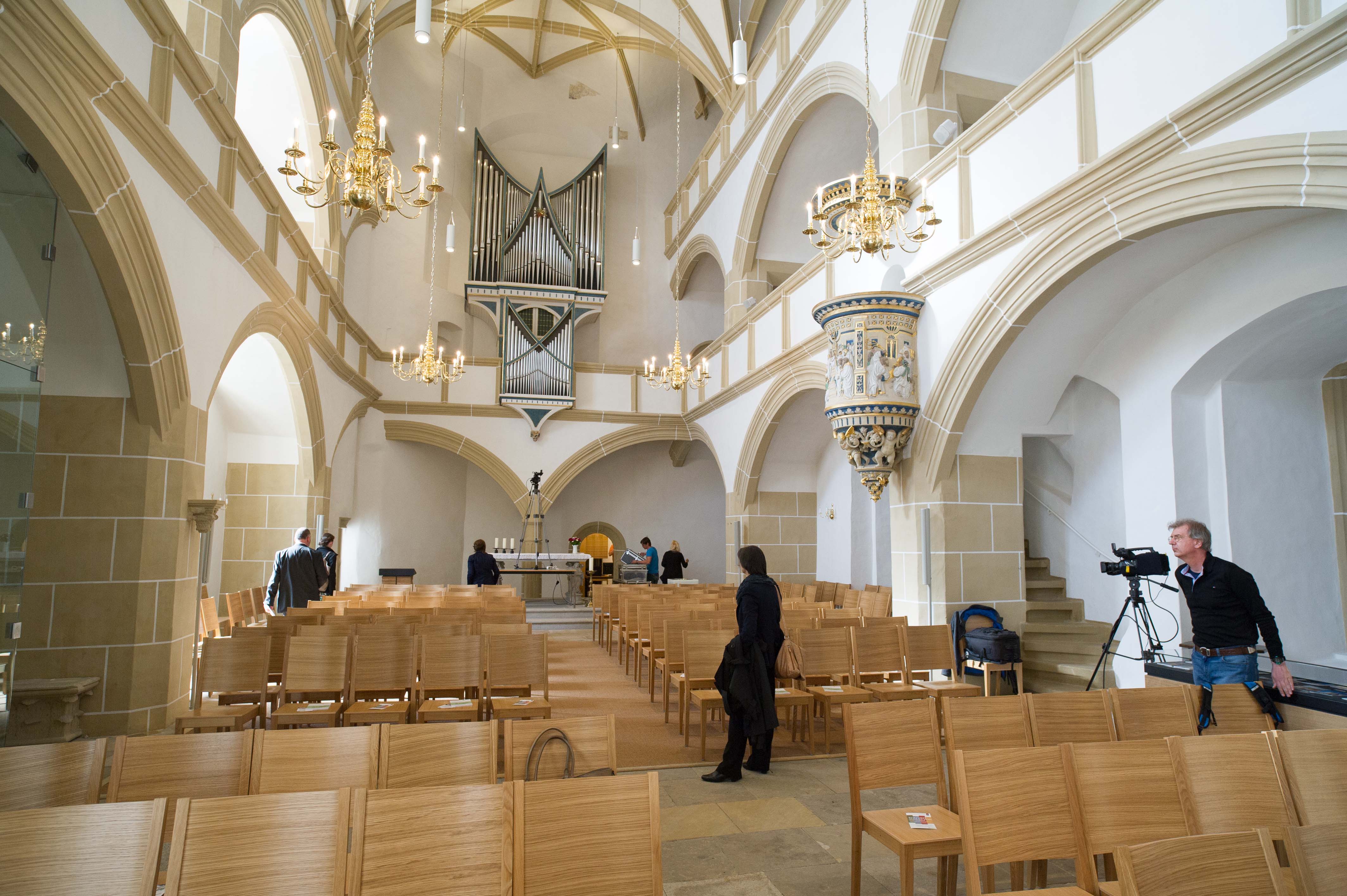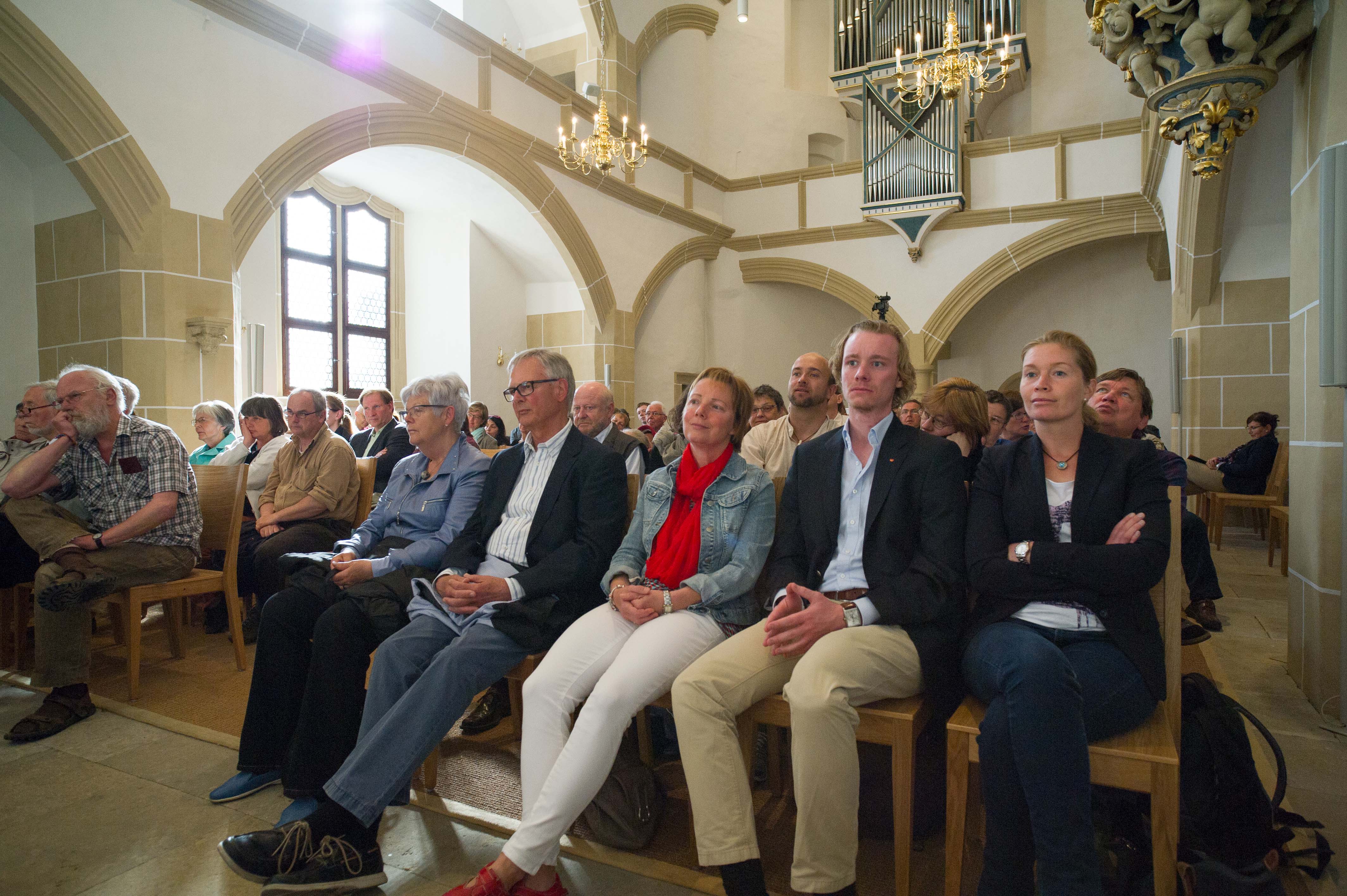 Dies blieb nicht ohne Replik des Podiums. Henriette Kretz und Hans Joachim Meyer zeigten zunächst Verständnis für die Position der GDL. Vereinigungsfreiheit und Streikrecht sind hohe Güter, es gelte aber abzuwägen. Die 80-Jährige war selbst zwei Tage im Bahnstreik gestrandet und mahnte, man die Interessen der Kunden nicht außer Acht lassen. Hans Joachim Meyer sieht vor allem einen Versuch der GDL, die eigene Machtbasis auf alle Zugbediensteten zu erweitern – auf Kosten einer anderen Gewerkschaft. Damit würde die GDL allerdings die Gewerkschaften als Ganzes gefährden. Zudem habe Weselsky ganz persönlich den Tarifkonflikt befeuert, so Meyer. Da war er: der Bahnkonflikt, in Teilen ausgetragen in der Kapelle von Schloss Hartenfels in Torgau.