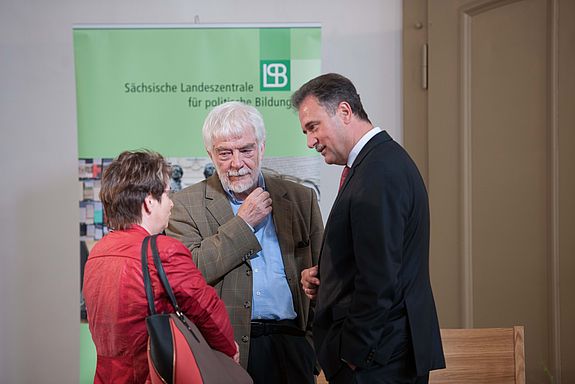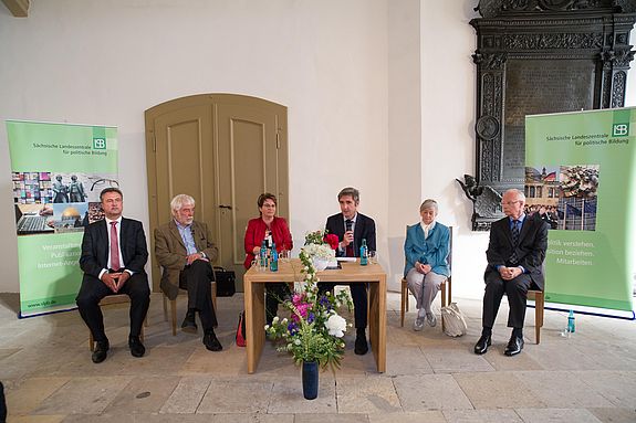 Als Gäste waren eingeladen: Karin Berndt, „Schulrebellin“ und Bürgermeisterin von Seifhennersdorf, Henriette Kretz, Holocaustüberlebende, Hans-Joachim Maaz, Psychoanalytiker, Hans Joachim Meyer, Sächsischer Staatsminister a. D. und Claus Weselsky, Bundesvorsitzender der Gewerkschaft Deutscher Lokomotivführer (GDL). Moderiert wurde die 90-minütige Podiumsdiskussion von Frank Richter, Direktor der Landeszentrale.