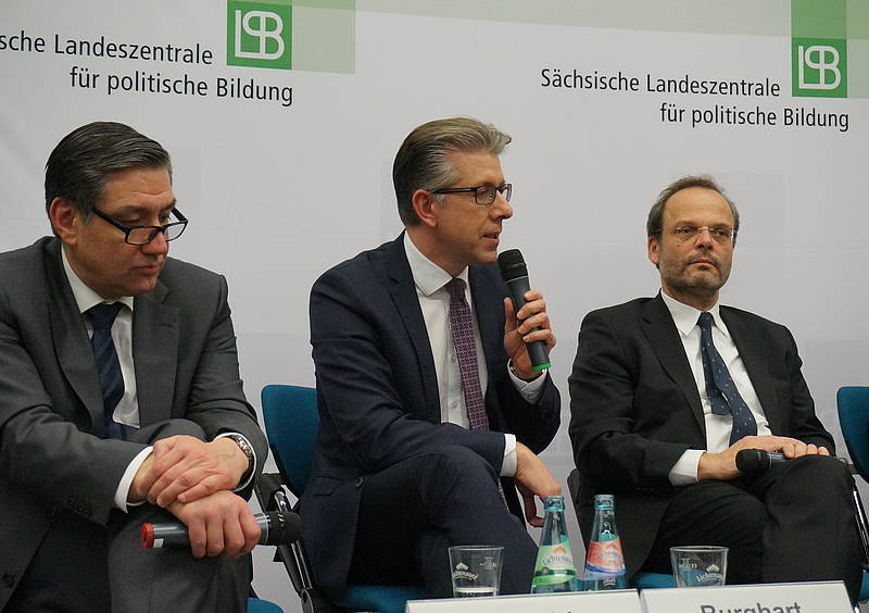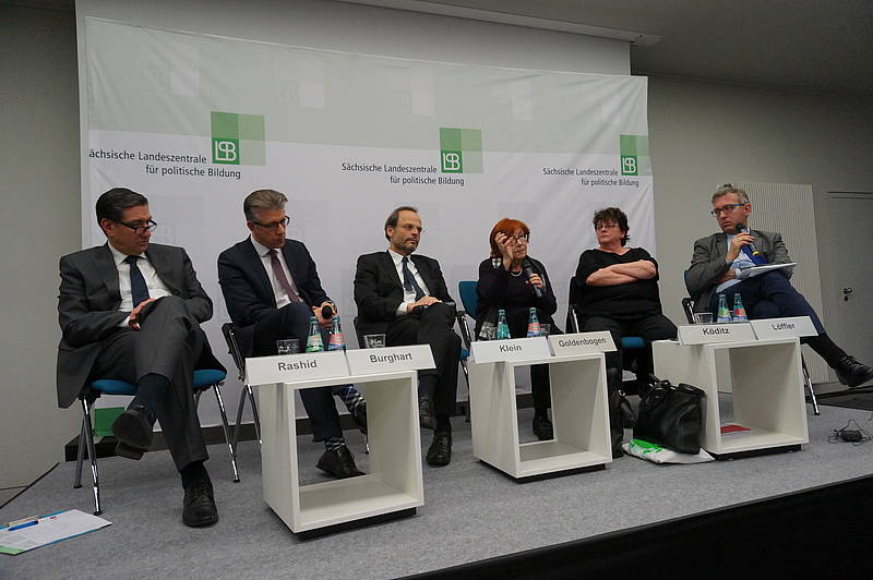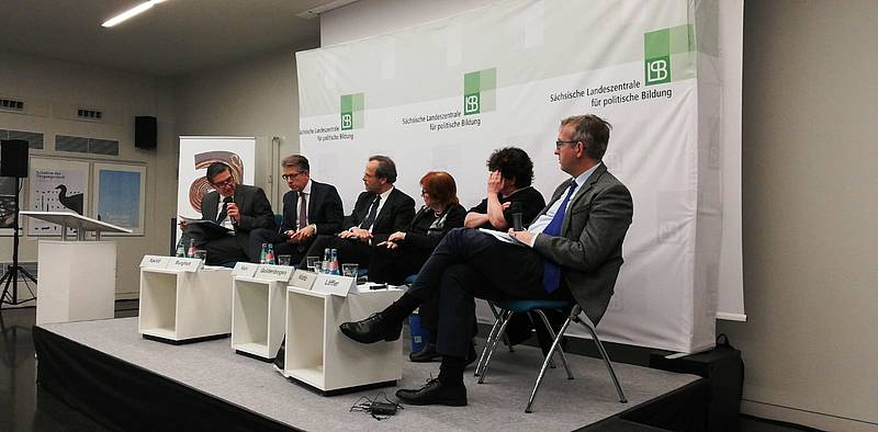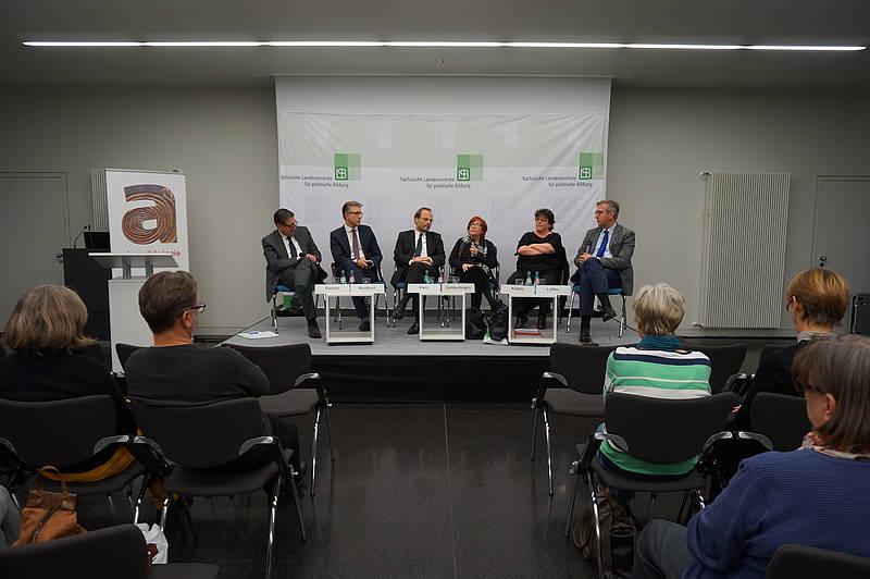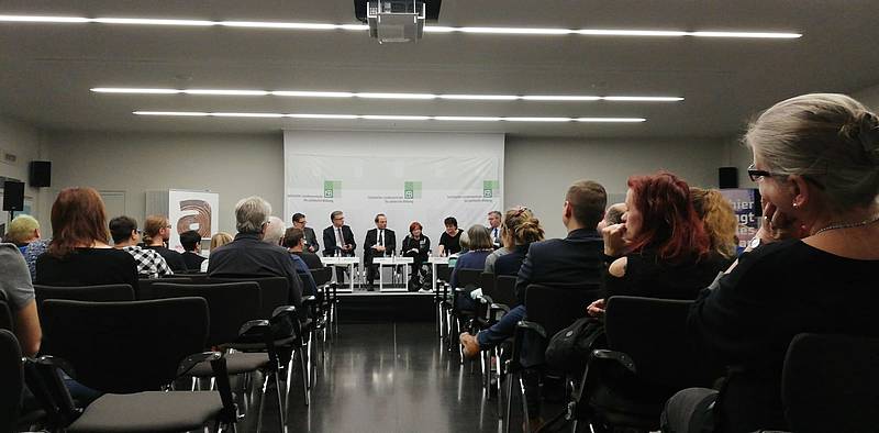 Es waren wieder viele Menschen zur Antisemitismus-Reihe der Sächsischen Landeszentrale für politische Bildung gekommen. Jung und alt, Männer und Frauen, Juden und Nicht-Juden. Sie waren gekommen, um der Podiumsdiskussion mit Vertretern der Politik und Zivilgesellschaft zu lauschen. Der Direktor der Sächsischen Landeszentrale für politische Bildung, Dr. Roland Löffler, moderierte den Abend.