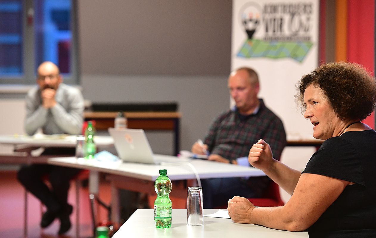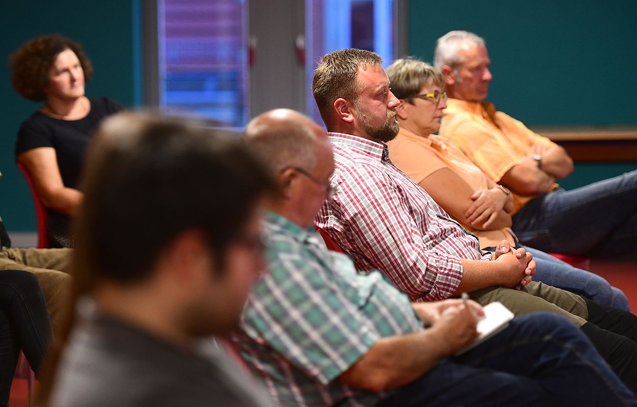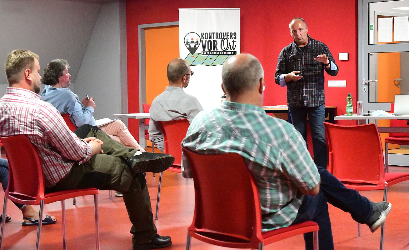 Rund 15 Teilnehmende waren der Einladung zur Diskussion gefolgt, die im Rahmen der Reihe "Kontrovers vor Ort" der Sächsischen Landeszentrale für Politische Bildung geführt wurde. Als Diskussionsgäste auf dem Podium kamen Bernd Dankert, Artenschutzbeauftragter beim sächsischen Landwirtschaftsministerium, David Greve, Geschäftsführer des Bund für Umwelt und Naturschutz (BUND) Sachsen und Gabriela Lebsa als Vertreterin der Bürgerinitiative für die Begrenzung der Wolfspopulation aus Rosenthal im Kreis Bautzen.