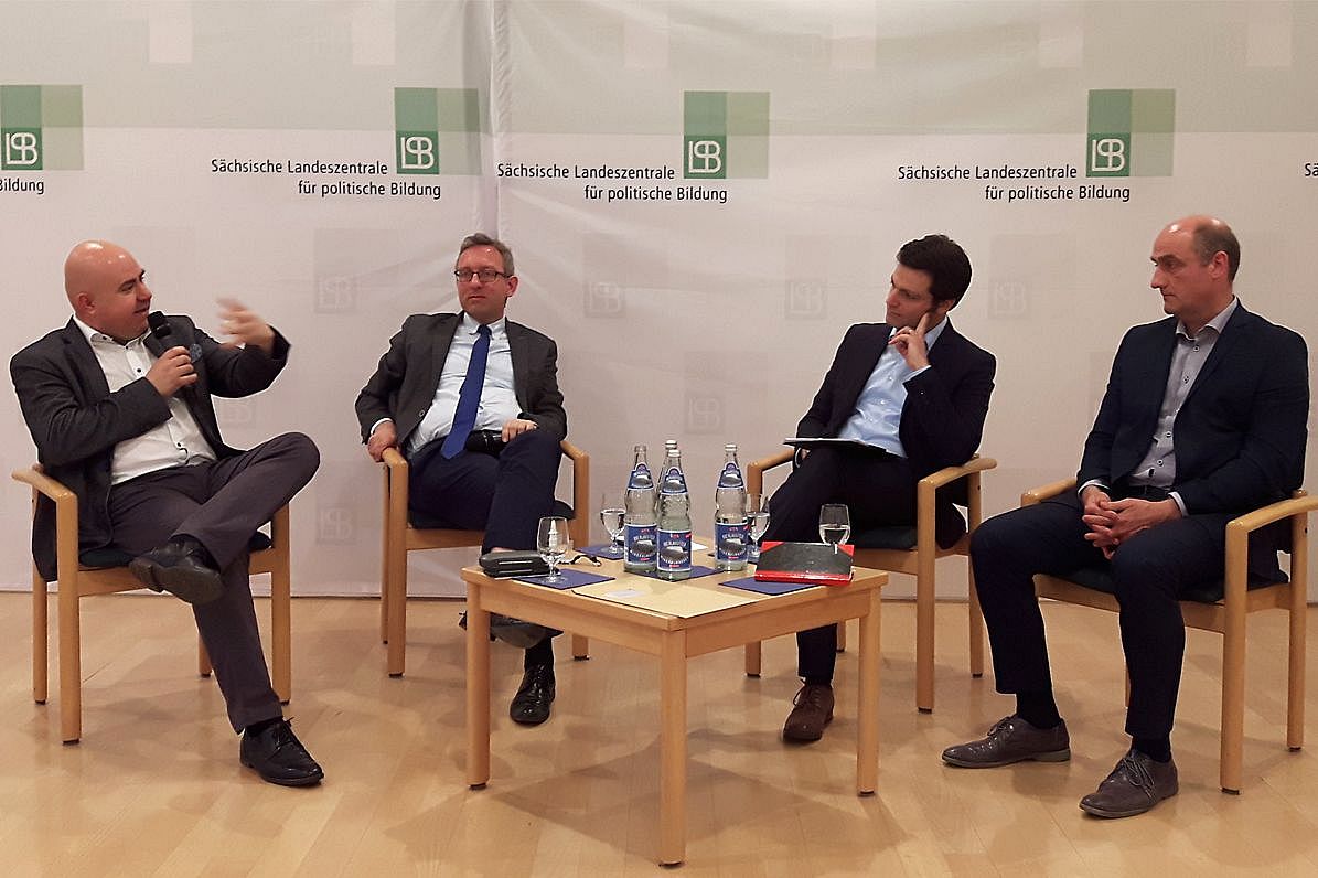 mehrAm 19. April waren Vertreter des flämischen Regionalparlamentes in Dresden zu Besuch. Am Abend waren sie zu Gast bei einer Podiumsdiskussion in der Sächsischen Landeszentrale für politische Bildung. Der Parlamentspräsident Flanderns, Jan Peumans und der Sächsische Landtagspräsident Dr. Matthias Rößler diskutierten zum Thema „Die Rolle der Regionalparlamente in Europa von Morgen“. Das Gespräch, das live ins Deutsche und Niederländische übersetzt wurde, moderierte der ZDF-Journalist Michael Bewerunge.