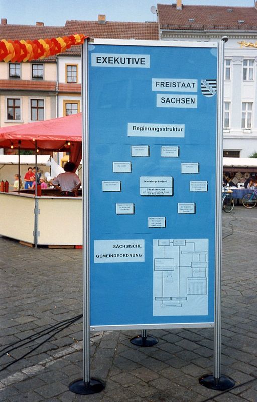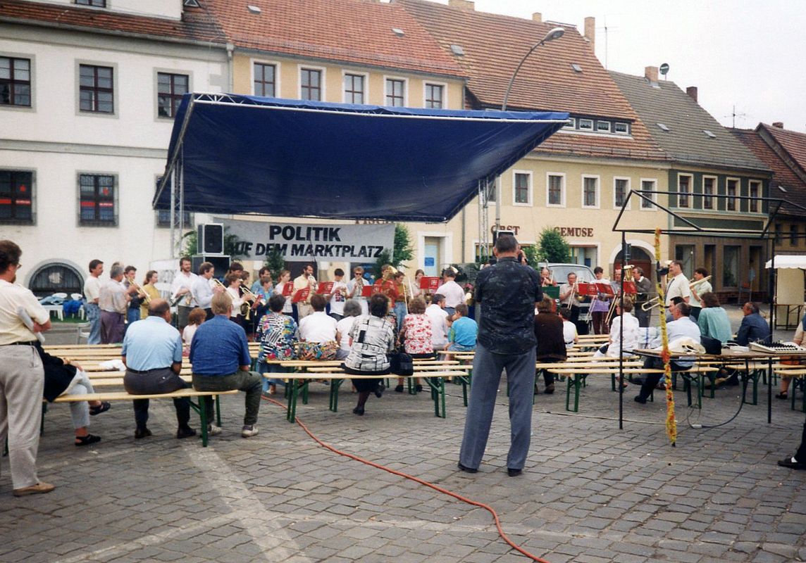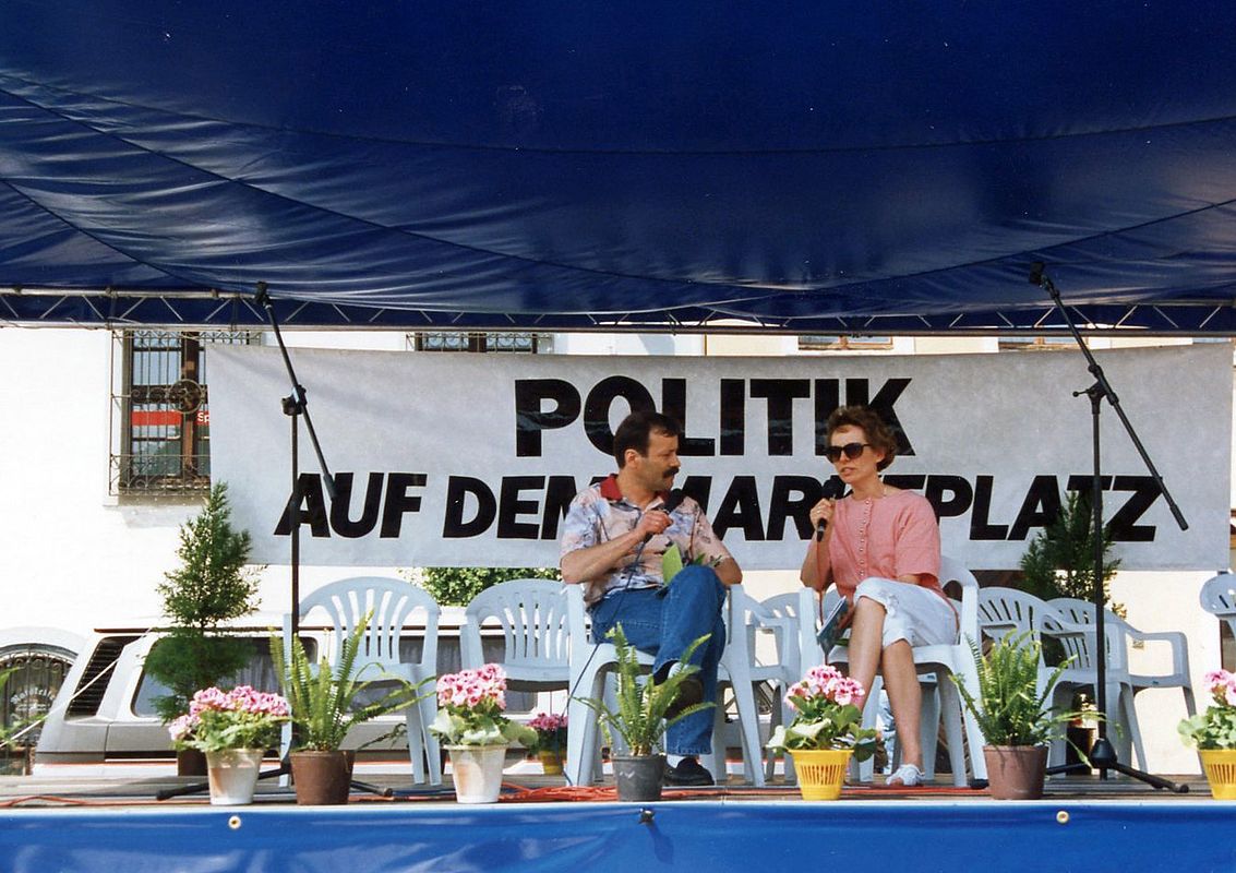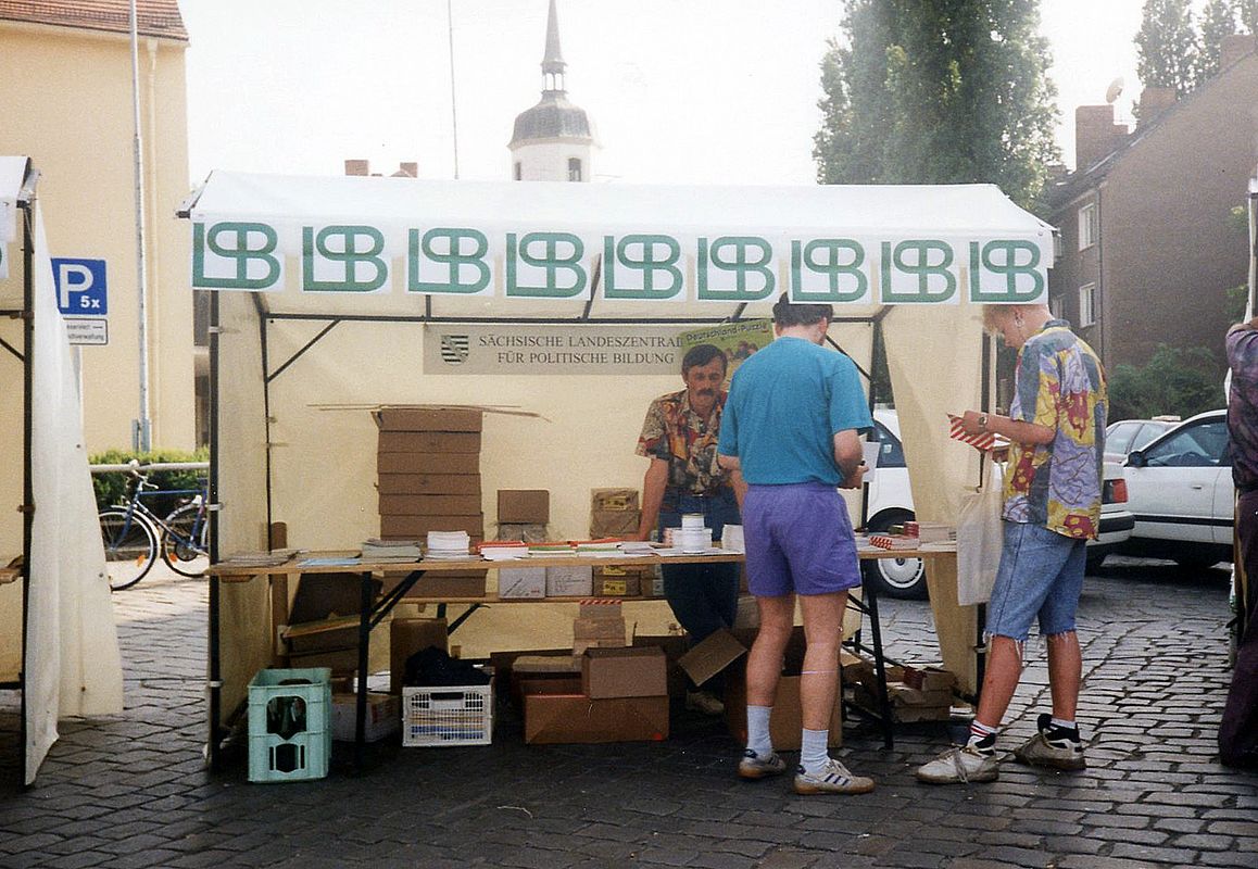 Das Veranstaltungsformat „Politik auf dem Marktplatz” wurde von der Landeszentrale für politische Bildung Baden-Württemberg entwickelt. Aufgrund der intensiven Kontakte der SLpB zu den Kolleginnen und Kollegen aus Stuttgart wird dieses erfolgreiche Format am 14. und 15. Mai 1993 erstmalig auch in Sachsen umgesetzt.