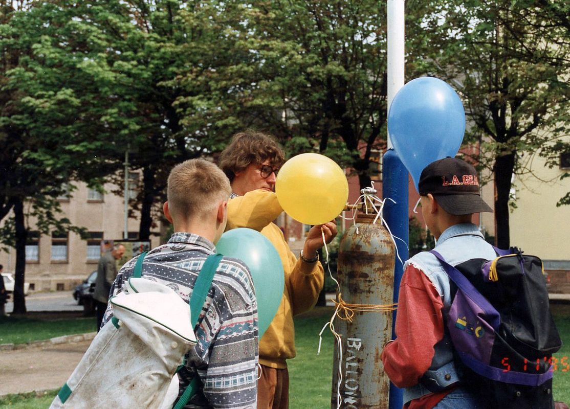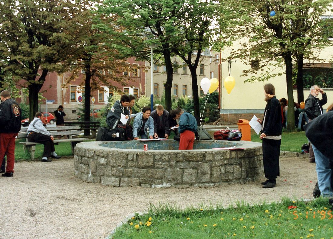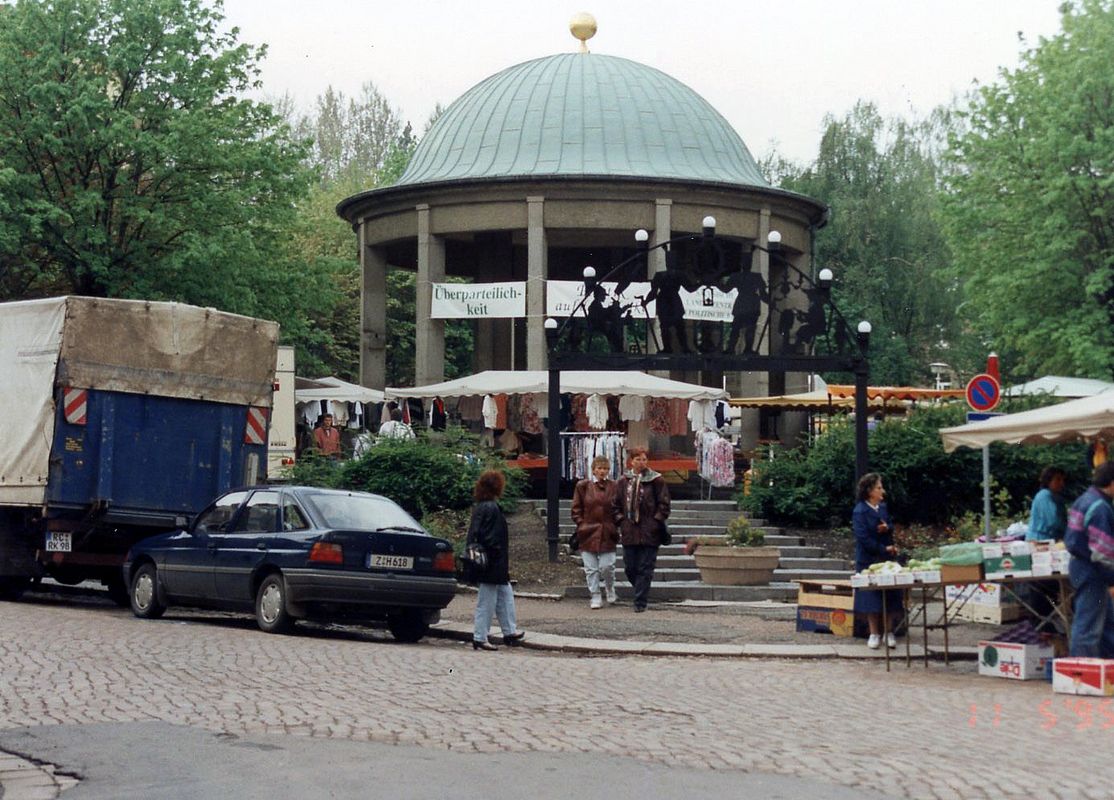 Am 11. Mai 1995 sind wir mit Politik auf dem Marktplatz in Wilkau-Haßlau.