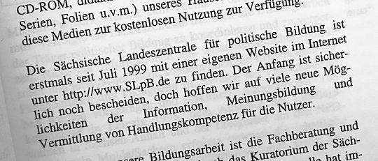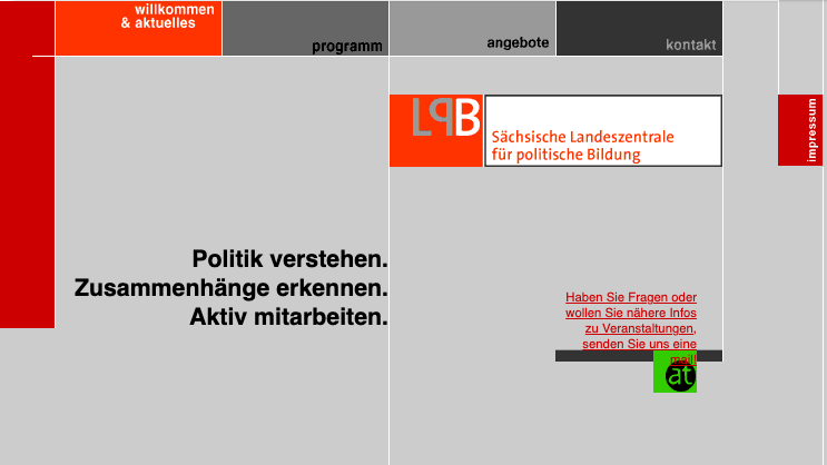 Wie heute werden dort aktuelle Neuigkeiten aus dem Haus, programmatische Highlights und dauerhafte Angebote der Sächsischen Landeszentrale für politische Bildung präsentiert.