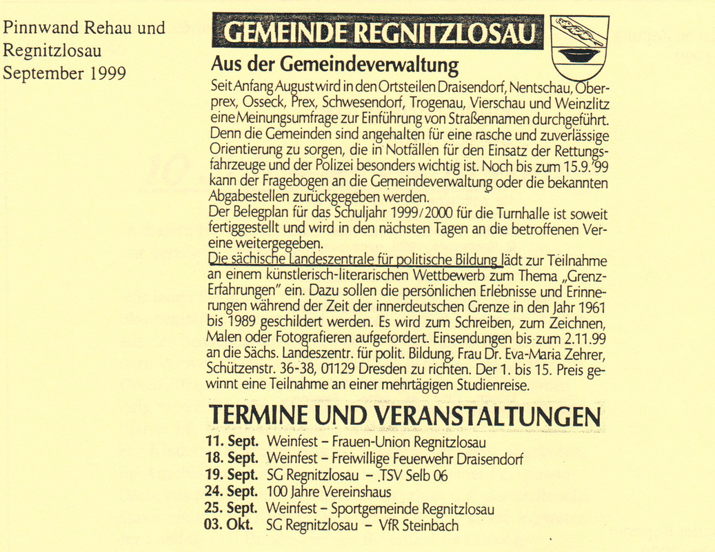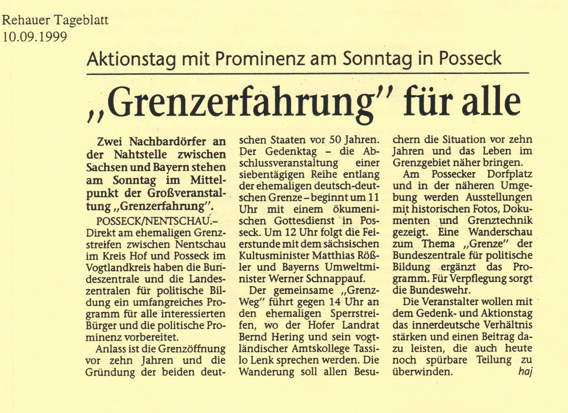 Ein Aktionstag am 12. September in Posseck stellt den Höhepunkt einer siebentägigen Veranstaltungsreihe unter dem Motto „Grenz-Erfahrungen“ dar. Die SLpB hatte zusammen mit der Bayerischen Landeszentrale für politische Bildungsarbeit und der Bundeszentrale für politische Bildung eingeladen.