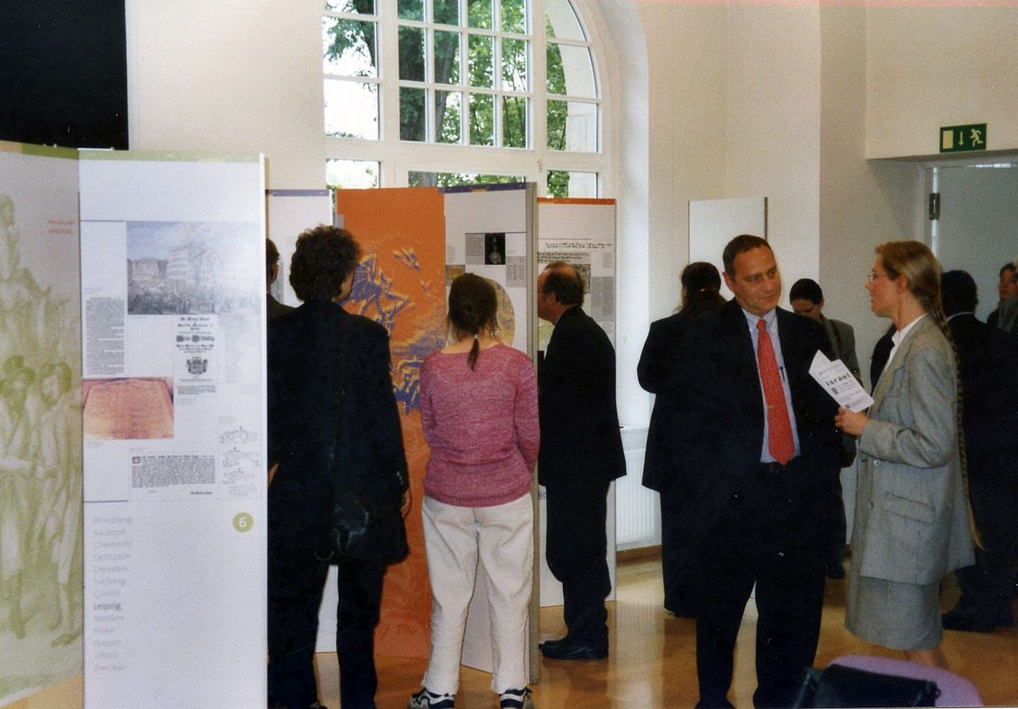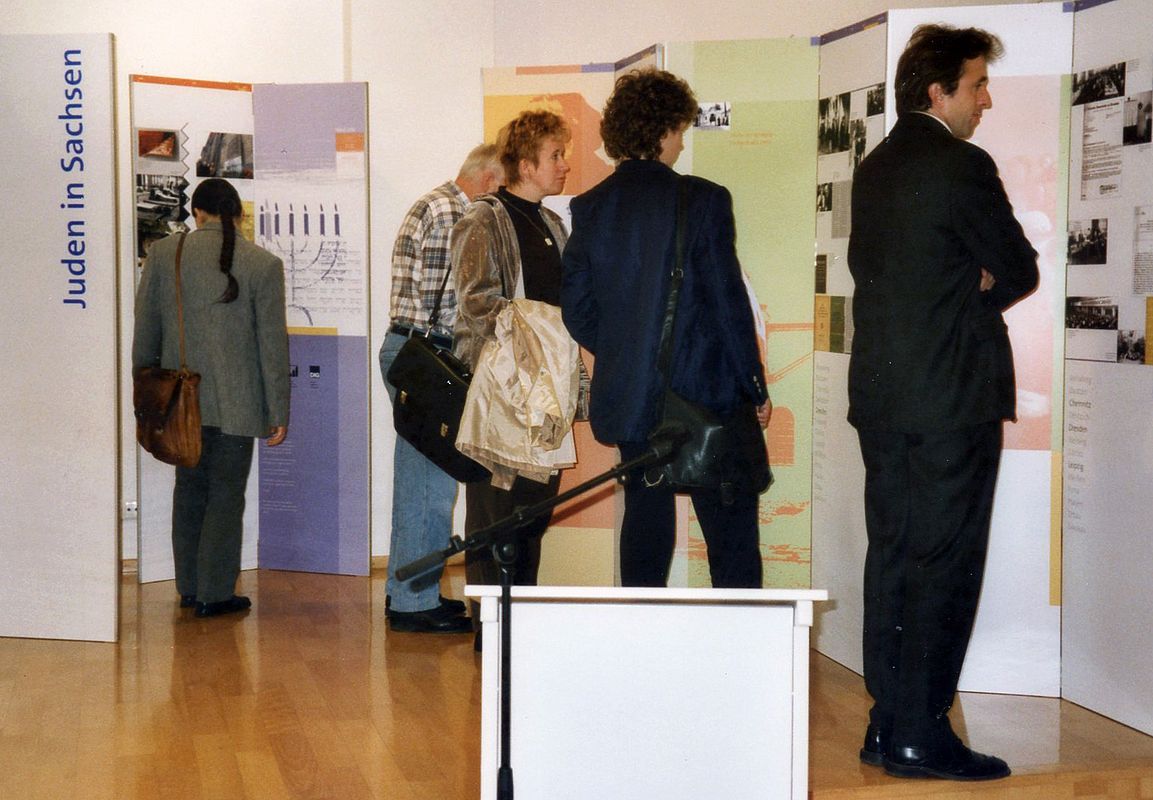 Am 24. September 2002 wird die neue Wanderausstellung „Juden in Sachsen” im Saal der SLpB erstmals der Öffentlichkeit vorgestellt. Der Schwerpunkt der Schautafeln liegt auf der Geschichte des 19. und 20. Jahrhunderts mit dem traurigen Höhepunkt der Zerstörung vieler Synagogen in ganz Deutschland im Rahmen der Reichspogromnacht am 9. November 1938. Eine zuversichtliche Perspektive bietet demgegenüber die Entwicklung der jüdischen Gemeinden in Sachsen, die seit der Wiedervereinigung anwachsen und den Bau neuer Synagogen erforderlich machen. Die Ausstellung geht anschließend auf die Reise durch Schulen im gesamten Freistaat.