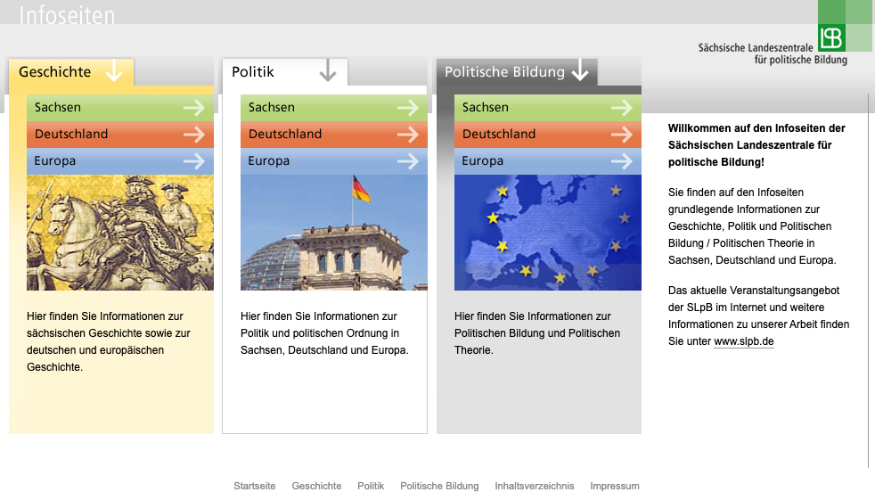 Unter www.infoseiten.slpb.de geht ein neues Angebot zur Geschichte, Politik und Politischen Bildung online.