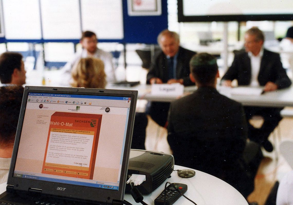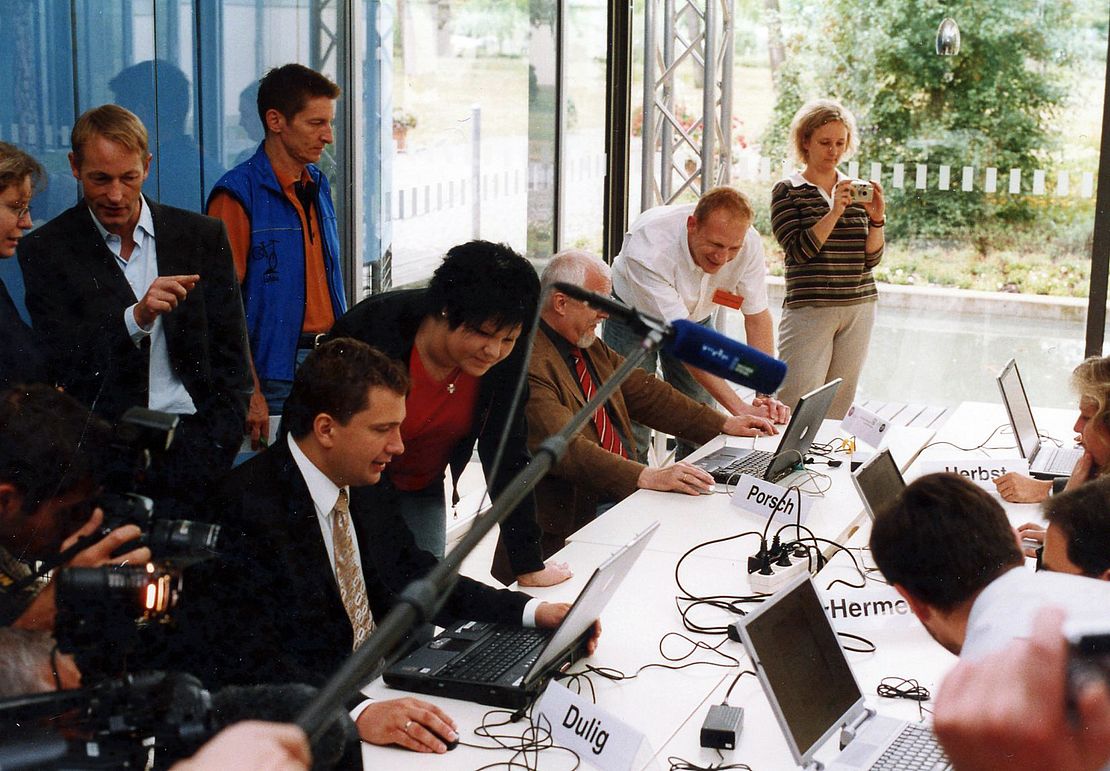 Der erste sächsische Wahl-O-Mat 2004 und die Bilder von der Pressekonferenz zu seiner Veröffentlichung