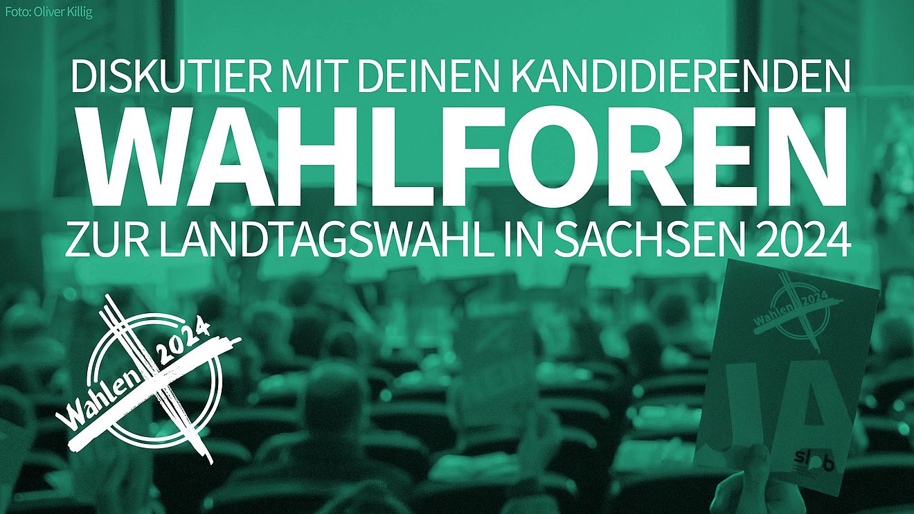 „Diskutieren Sie mit zur Landtagswahl! 60 Wahlforen. In ganz Sachsen“. Die Sächsische Landeszentrale für politische Bildung (SLpB) bietet Bürgerinnen und Bürgern in allen 60 Wahlkreisen an, vor der Landtagswahl am 1. September 2024 mit Direktkandidatinnen und -kandidaten der aussichtsreichsten Parteien live vor Ort ins Gespräch zu kommen. Ziel der Wahlforen ist, Menschen in Sachsen eine kompetente und informierte Wahlentscheidung zu ermöglichen und sie zu ermutigen, sich selbst für eine demokratische Gesellschaft zu engagieren.