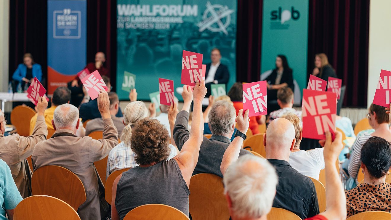 Im Vorfeld der Wahl zum Sächsischen Landtag organisierte die SLpB in Kooperation mit Leipziger Volkszeitung, Sächsischer Zeitung und Sächsischen Volkshochschulen in allen 60 Wahlkreisen Podien mit den Direktkandidatinnen und -kandidaten der aussichtsreichsten Parteien. Die Wahlforen hatten zum Ziel, den Menschen in Sachsen mit einem gleichermaßen offenen wie geschützten Diskussionsraum eine informierte Wahlentscheidung zu ermöglichen und sie zu ermutigen, sich selbst für eine demokratische Gesellschaft zu engagieren.