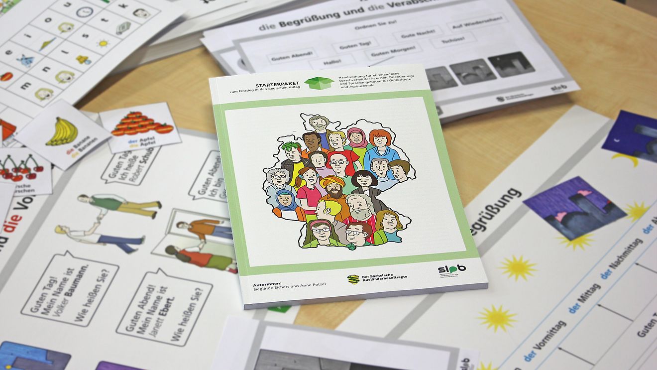 Jedes Starterpaket enthält 300 farbige Lehrblätter zu unterschiedlichen Themenmodulen (auf stabilem Papier/DinA3), dazu passende Kartensätze zum Ausschneiden sowie Übungsblätter. Die Handreichung im Katalogformat bietet didaktisch-methodische Hinweise und vermittelt ein vielfältiges Basiswissen: etwa über das Wahlsystem und die medizinische Versorgung in Deutschland, über Kommunikationsmodelle, interkulturelles Lernen auf Augenhöhe und verantwortungsbewussten Umgang mit traumatisierten Menschen. Die erste Auflage des Starterpakets war 2017 schon vor Erscheinen durch die hohe Zahl an Reservierungen vergriffen. Die vierte, aktualisierte Auflage umfasst 500 Exemplare. Das Starterpaket wird an Initiativen und Ehrenamtliche über die SLpB (publikationen@slpb.sachsen.de) kostenfrei abgegeben.
