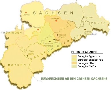 Es haben sich vier so genannte Euroregionen in Sachsen an der Grenze zu Tschechien und Polen gebildet (Euroregion Neisse, Elbe/Labe, Erzgebirge und Euregion Egrensis). Es handelt sich bei diesen Euroregionen um Zusammenschlüsse von Kreisen und Kommunen an den nationalen Binnen- und Außengrenzen der EU. Ziel dieser regionalen Zusammenschlüsse ist es, die grenzüberschreitende Zusammenarbeit in der Region zu fördern, um so die Wettbewerbsfähigkeit des gesamten Raumes zu erhöhen. Die sächsischen Euroregionen kooperieren mit ihren Partnern auf den Gebieten Ökologie und Naturschutz, Fremdenverkehr, Erholung und Freizeit sowie im kulturellen und sportlichen Bereich.