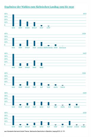 Die hohen Stimmenanteile der politischen Linken standen im Kontext eines politischen Antagonismus zwischen rechts und links in Sachsen, der während der gesamten Weimarer Zeit vorherrschte. Ein ausgleichendes politisches Mittelfeld war kaum existent, ein demokratischer Liberalismus wie etwa in Südwestdeutschland oder ein gewichtiges katholischen Wählerpotential für die Zentrumspartei fehlten. Seit 1930 änderte sich das Parteiengefüge dramatisch: die Nationalsozialisten errangen nun insbesondere in Südwestsachsen große Wahlerfolge. Bei den Reichstagswahlen vom 31. Juli 1932 gewann die NSDAP 41,2 Prozent der sächsischen Stimmen (Wahlkreis Chemnitz-Zwickau: 47 %) gegenüber 37,4 Prozent auf Reichsebene. Die SPD lag in Sachsen bei 28,4 Prozent gegenüber 21,6 Prozent im Reich.