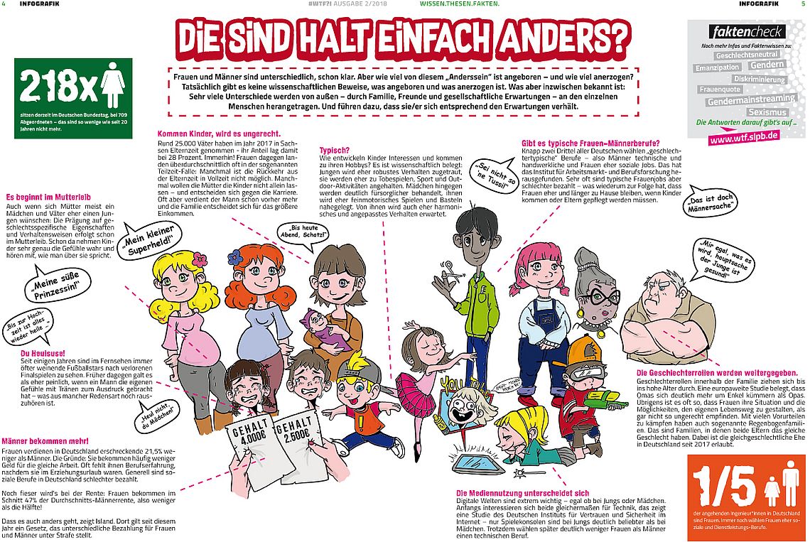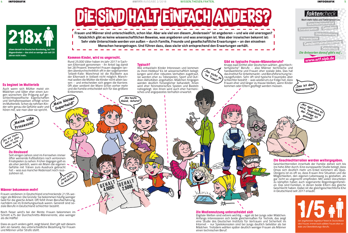 Das glauben wir doch nur, weil Unterschiede zwischen Frauen und Männern immer so betont werden. Schaut man genauer hin, stimmt das aber nicht! Wie ein Mensch ist – zum Beispiel eher kommunikativ oder eher still – ist von Mensch zu Mensch unterschiedlich und hängt überhaupt nicht vom Geschlecht ab. Frauen untereinander können viel unterschiedlicher sein als ein Mann und eine Frau. Testosteron zum Beispiel gilt als das Hormon, das typisch männlich ist und Männer aggressiv macht. Aber: Testosteron kann auch zu sehr freundlichem Verhalten führen. Und es kann bei Frauen genauso hoch sein wie bei Männern.
