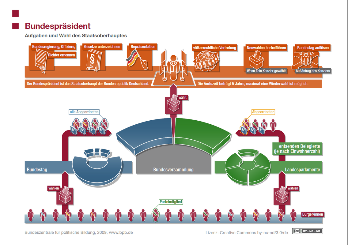 Bei der Ausgestaltung der Demokratie in der Bundesrepublik Deutschland handelt es sich um ein parlamentarisches System, was unter anderem bedeutet, dass das Amt des Regierungschefs und das des Staatsoberhauptes von unterschiedlichen Personen besetzt wird. Obwohl der Bundespräsident als Staatsoberhaupt protokollarisch der ranghöchste Amtsträger ist, hat er auf die Politik der Bundesregierung formal nur einen geringen Einfluss. Dies hat vor allem damit zu tun, dass der Parlamentarische Rat, welcher nach dem zweiten Weltkrieg das Grundgesetz ausfertigte, aus dem Scheitern der Weimarer Republik unter anderem die Lehre zog, dass ein direkt gewählter Präsident mit zu vielen Vollmachten ein Risiko für die Stabilität des politischen Systems darstellt.