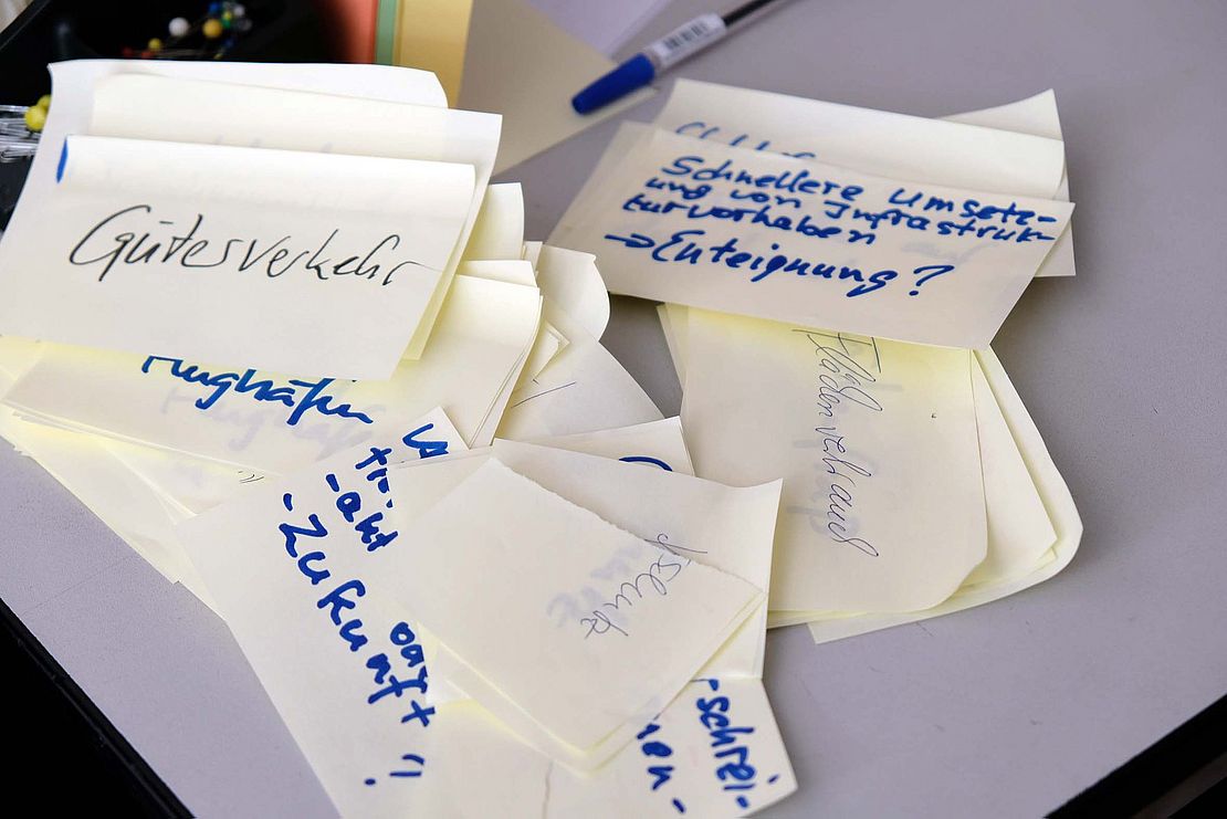 Diese Aufteilung der Themen dient nur der besseren Strukturierung der Arbeit. Im Wahl-O-Mat erscheint sie nicht mehr.Am Ende des ersten Workshops steht eine Liste von 80 bis 100 Thesen.