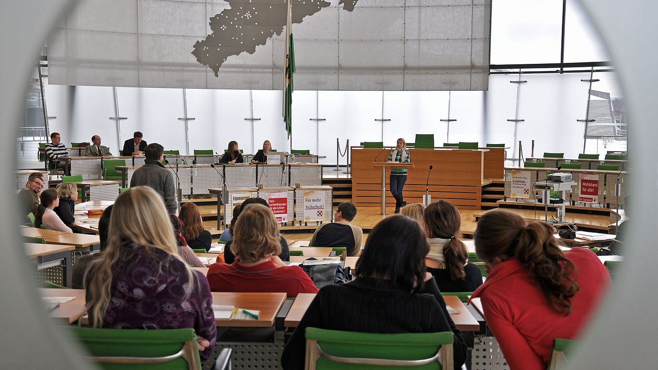 53 Studenten schlüpfen heute in die Rolle von Abgeordneten. Spielend werden sie den Sächsischen Landtag kennen lernen. Vorkenntnisse haben die Wenigsten. Sie kennen die Fernsehbilder von leeren Parlamentsbänken und können die Arbeit des Landtages kaum beurteilen. Das soll sich ändern. Unser Planspiel "Mittendrin im Landtag" zeigt ein realistisches Bild von Politik. Die Spielregeln sind dem politischen Alltag nachempfunden. Nur wer sie beherrscht, wird seine Gesetze durchbringen.