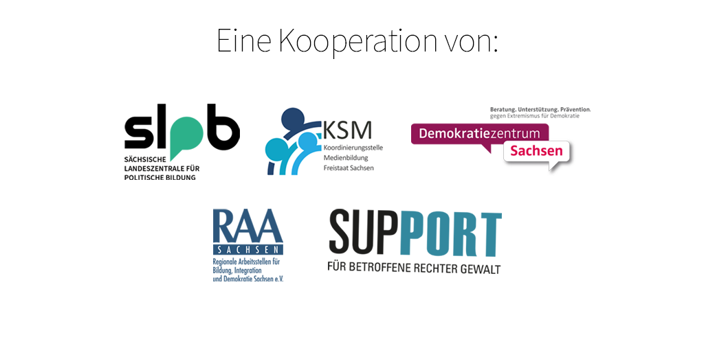 Eine Veranstaltung der Sächsischen Landeszentrale für politische Bildung in Kooperation mit der Landeskoordinierungsstelle des Demokratie-Zentrums Sachsen, dem RAA Sachsen e.V. sowie der Koordinierungsstelle Medienbildung Sachsen.