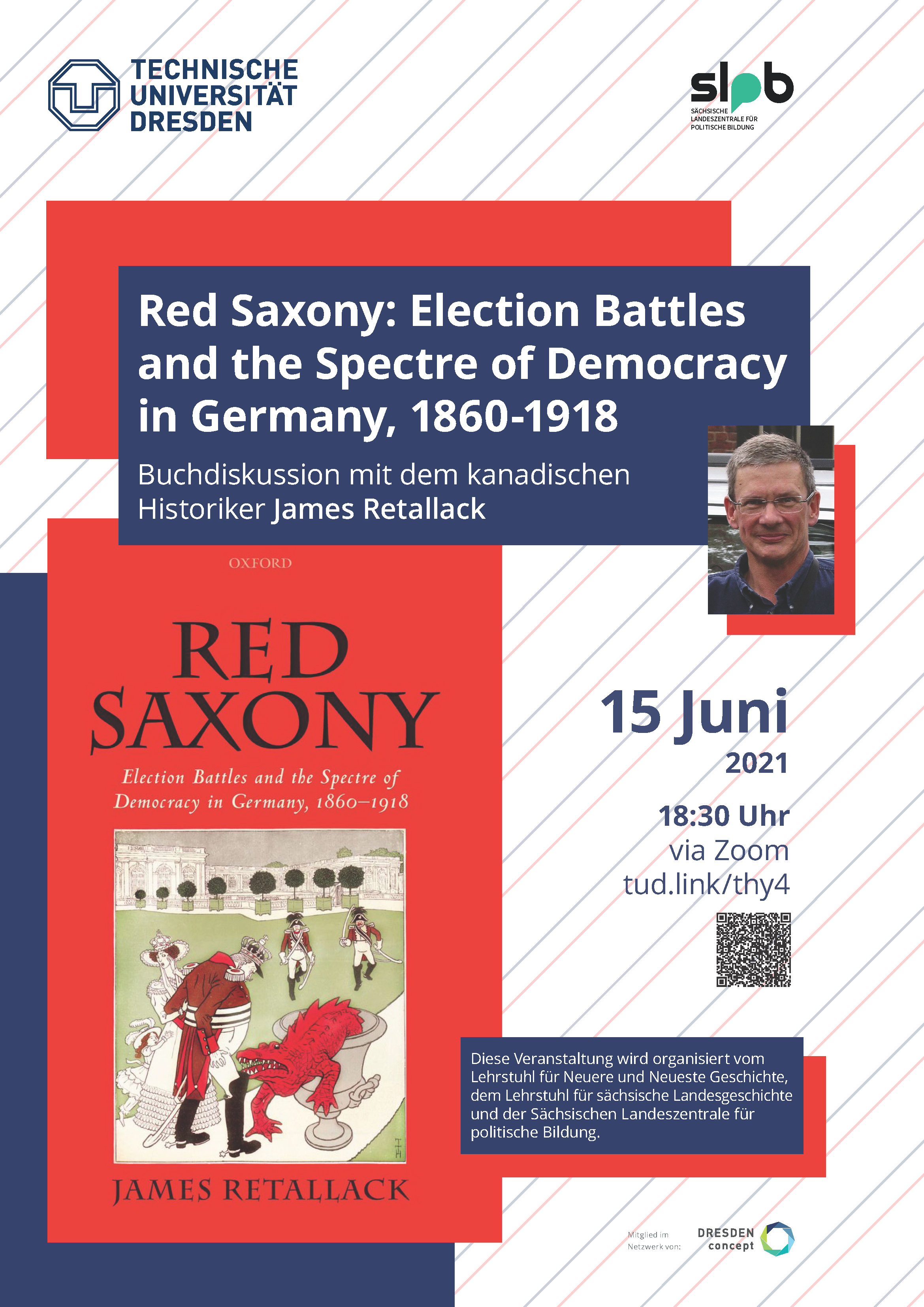 Wenn 150 Jahre nach der Reichsgründung 1871 in der Geschichtswissenshaft erneut um die historische Signatur des deutschen Kaiserreichs gerungen wird, darf der Blick auf Sachsen nicht fehlen. Zugleich als „Rotes Königreich“ und als „Musterland der Reaktion“ bekannt und berüchtigt, war Sachsen von einer fundamentalen Politisierung und Polarisierung geprägt und musste bezeichnenderweise dreimal in kürzester Zeit sein Wahlrecht umgestalten. Welche Folgen dies für die politische Kultur Sachsens hatte und welche Kontinuitäten daraus bis weit in das 20. und sogar 21. Jahrhundert hinein entstanden, wollen wir mit dem renommierten kanadischen Historiker James Retallack diskutieren, der seit vielen Jahren zur Geschichte Sachsens im Kaiserreich geforscht und seine Erkenntnisse in der umfangreichen Monographie „Red Saxony“ (Oxford University Press) veröffentlicht hat.
