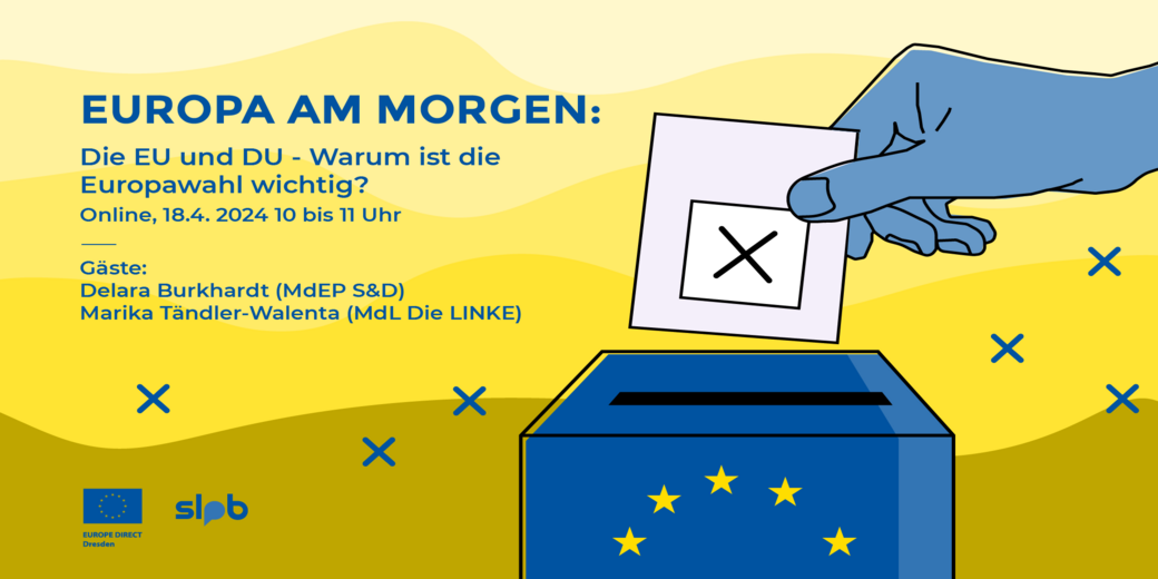 Die Sächsische Landeszentrale für politische Bildung und das EUROPE DIRECT Dresden bieten mit der Reihe „Europa am Morgen“ ein neues und einzigartiges Format. „Die EU und DU – Warum ist die Europawahl wichtig?“ soll Jugendlichen und insbesondere Erstwählenden Europa, die EU und das Europäische Parlament nahebringen. Wie sieht der Alltag von Europaabgeordneten aus? Wie beeinflusst das Europäische Parlament den Alltag der Menschen in Europa, Deutschland und Sachsen? Wie können Themen junger Menschen in die parlamentarische Arbeit des Europäischen Parlamentes einfließen?