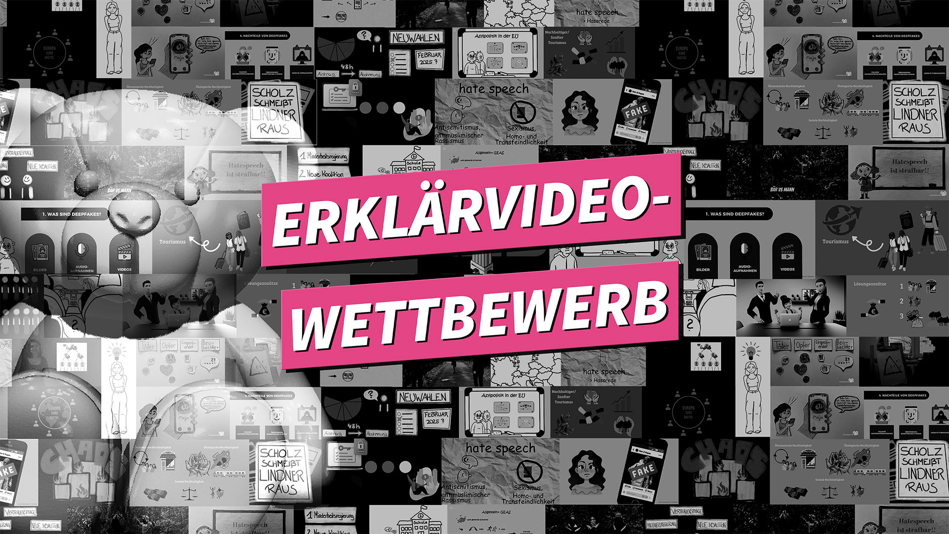 In unserem Erklärvideo-Wettbewerb rufen wir Jugendliche seit 2018 dazu auf, aktuelle politische Themen 3-minutigen Videos unterhaltsam zu erklären.